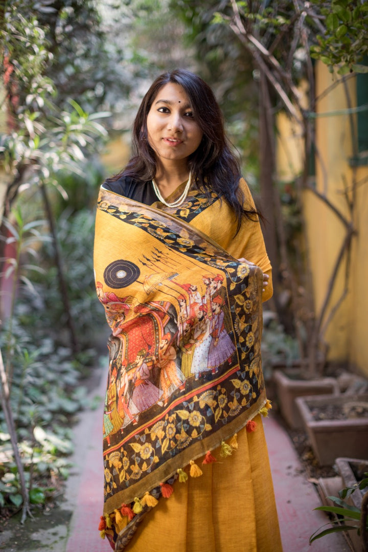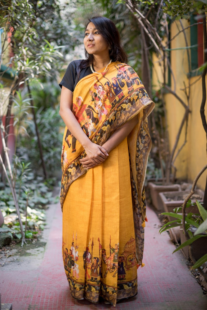 Pure Linen Saree In Yellow