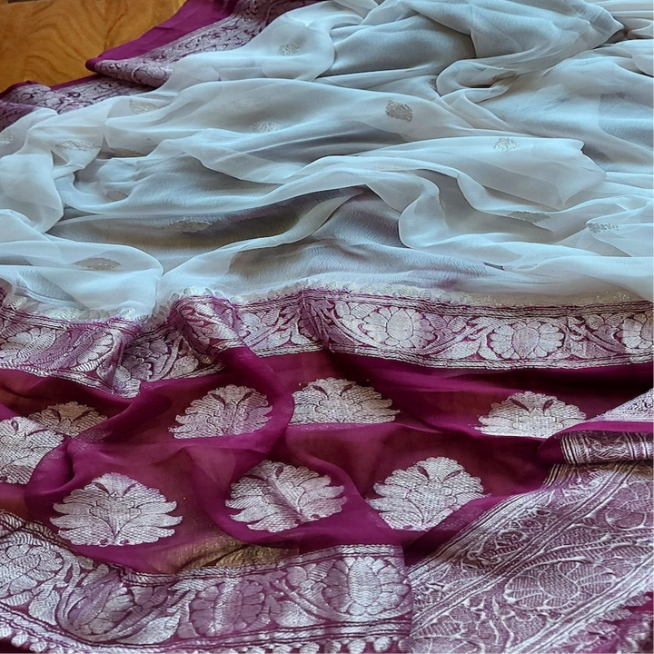 White-Wine Purple Georgette Jaal Banarasi Saree