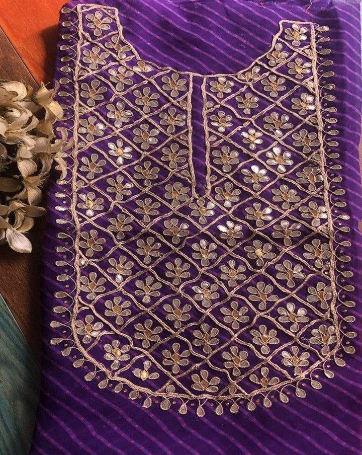 Step Out In Style With The Purple Gota Patti Kurti. Crafted From Georgette For A Comfort Feel, This Beautiful Kurti is Perfect For The Modernistic Woman. This purple Georgette Kurti is Adorned With Beautiful Heavy Gota Patti Work On Neckline and Small Booti All Over.