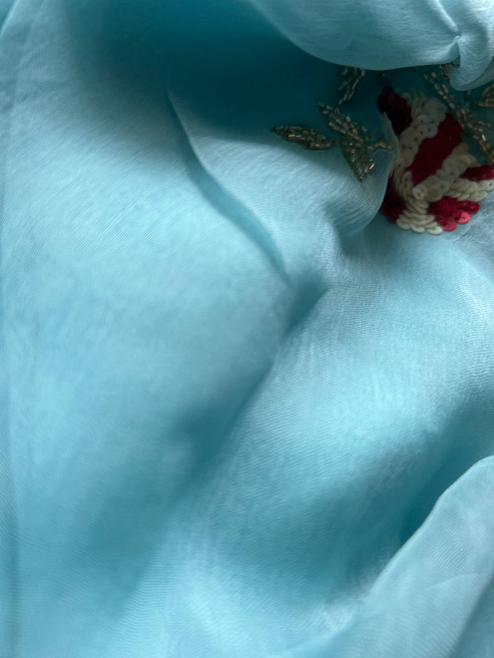 On hand embroidred sarees and suits there may be little variations in Colour or Embroidery due to hand dyed the hand embroiderd process of making each product unique and hence the shade tone may vary by 3-5% .
