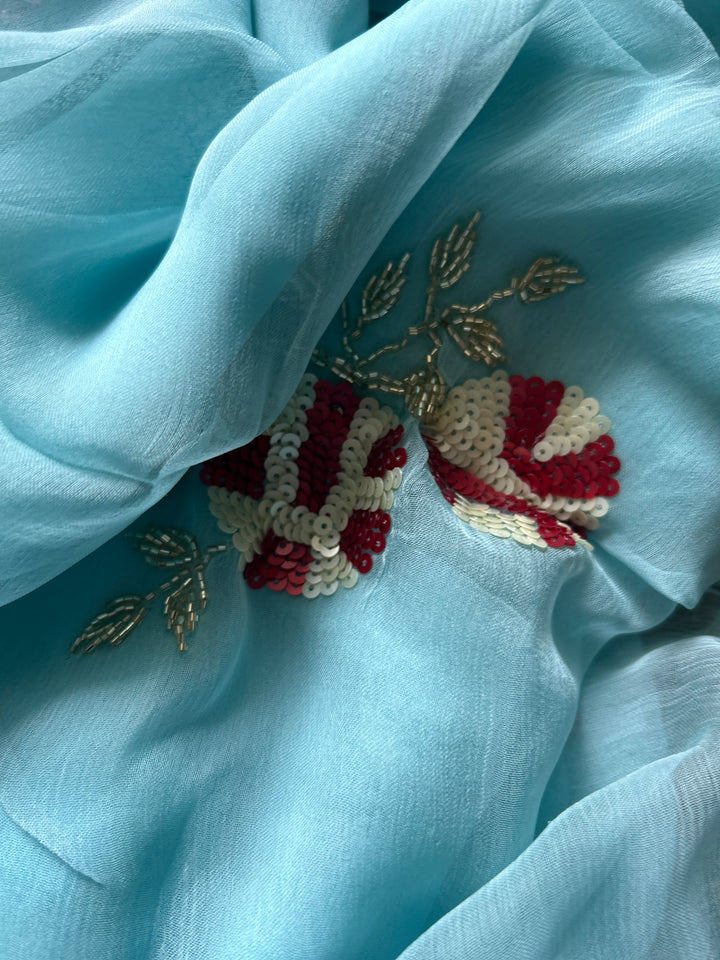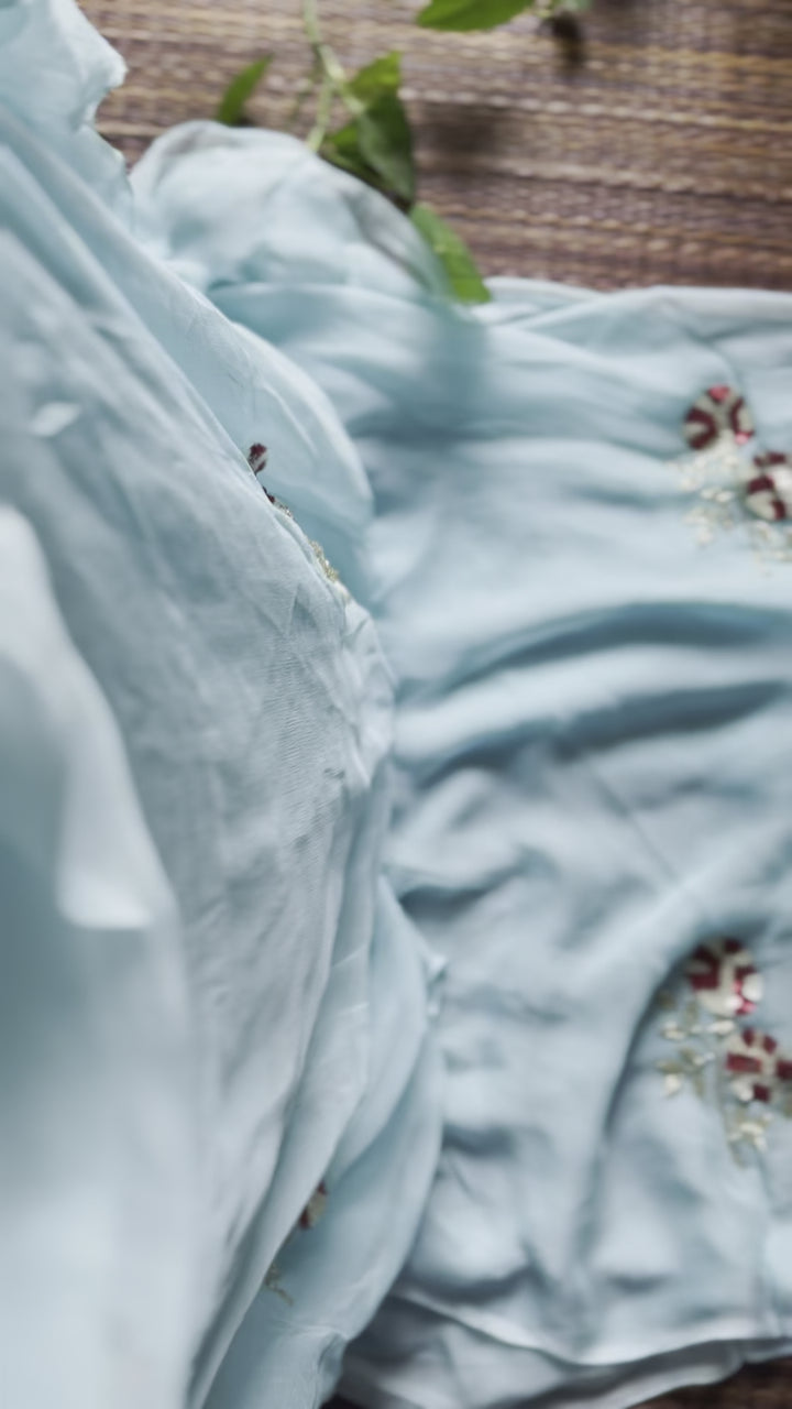 Soft Blue Rajputi Chiffon Saree