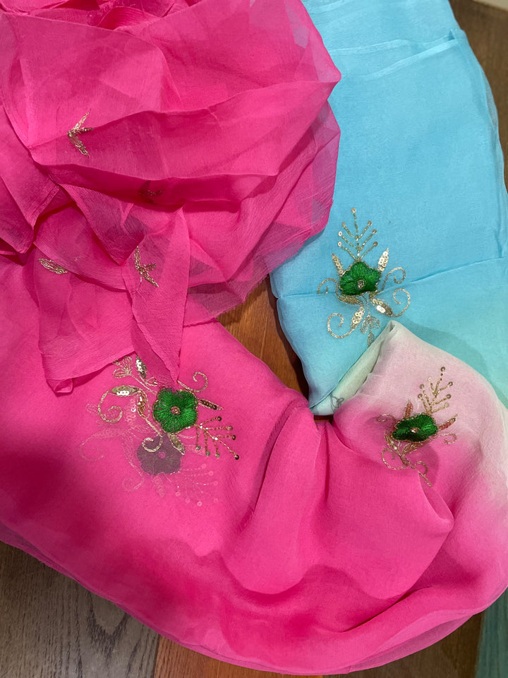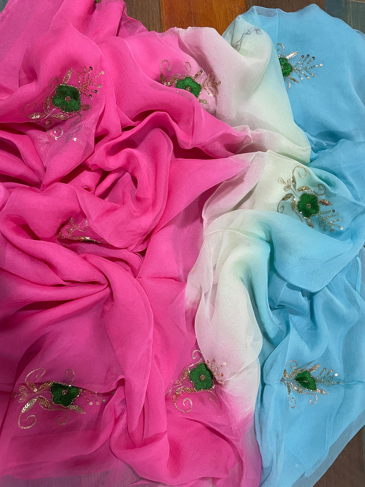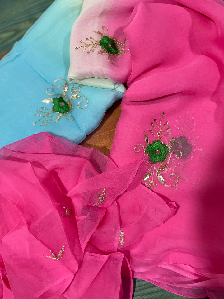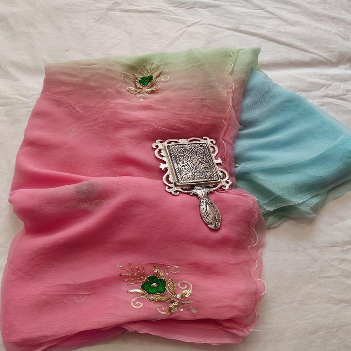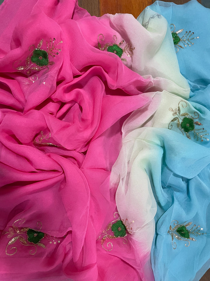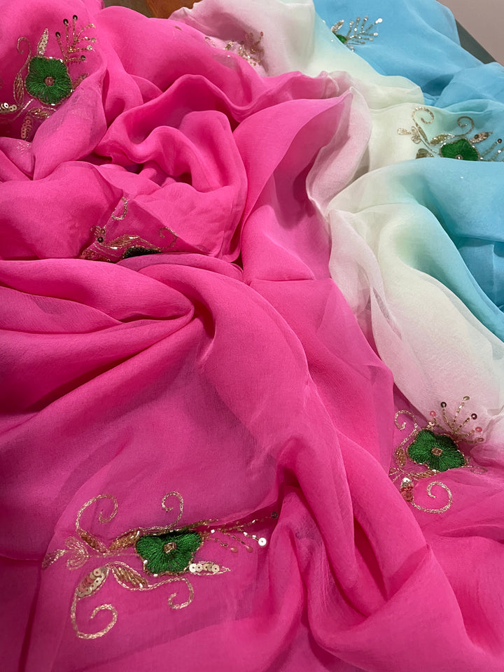 Rajputi Chiffon Handwork Saree in Pink And Blue