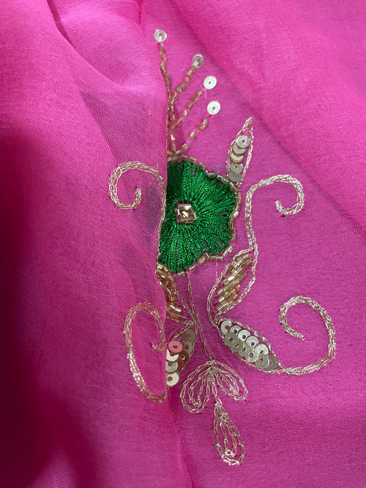 Eleganat Pure Rajputi Chiffon Saree In Pink, With Sequin Work All Over The Saree. The Hand Work On This Pure Chiffon Saree Makes It Look Delicate As Well As Perfect For Any Occasion. Pair This Rajputi Chiffon Saree Will Look More Beautiful If Paired With Pearl Or Kundan Jwellery And A Nice Traditional Clutch.