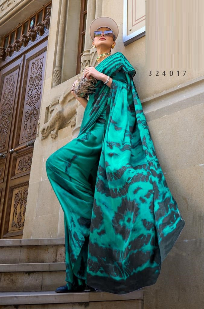 Rama color Satin Crepe Saree