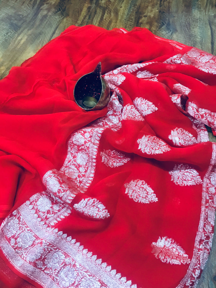 Red Banarasi Khaddi Georgette Saree