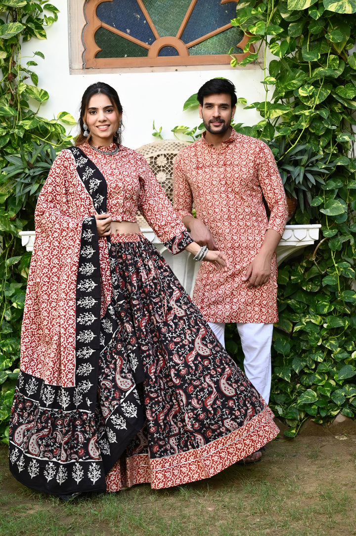 *Bagru Hand Block Printed Designer Top & Skirt With Mulmul Dupatta.*