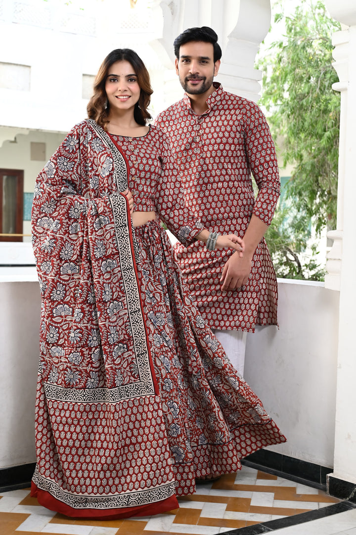 *Bagru Hand Block Printed Designer Top & Skirt With Mulmul Dupatta.*