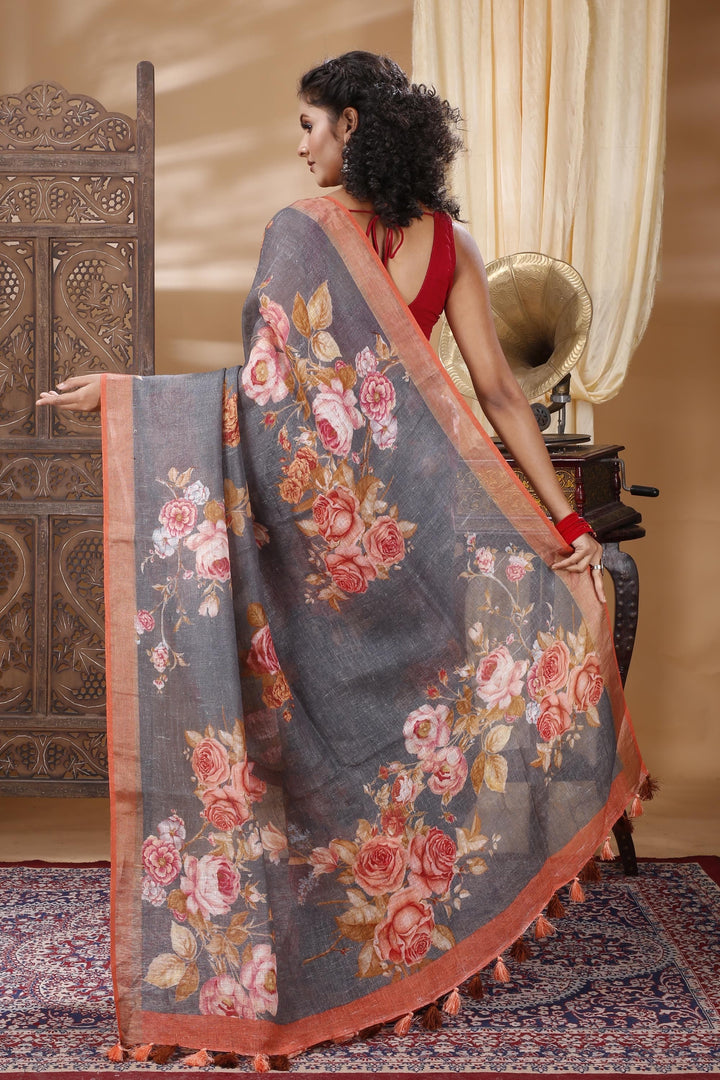 Royal Floral Linen Saree Premium