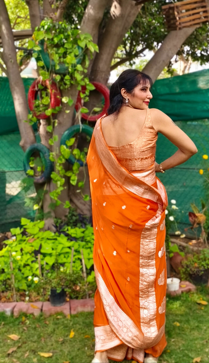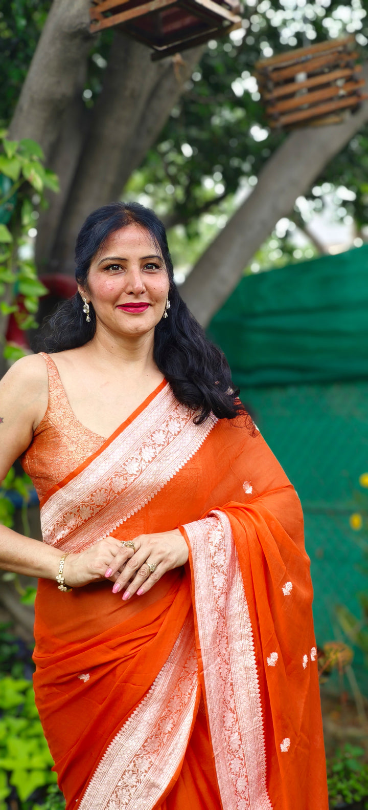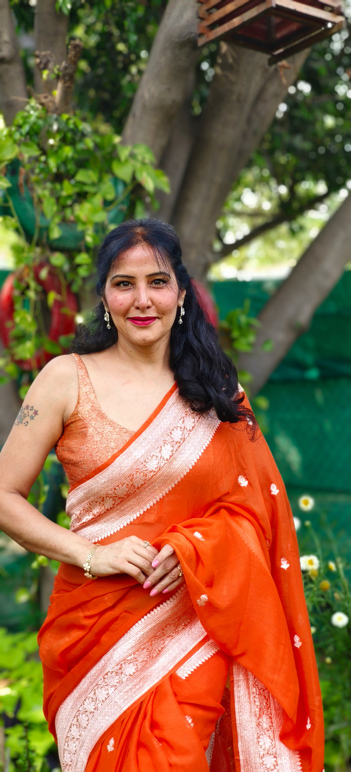 - Designer Orange Pure Banarasi Khaddi Georgette Saree