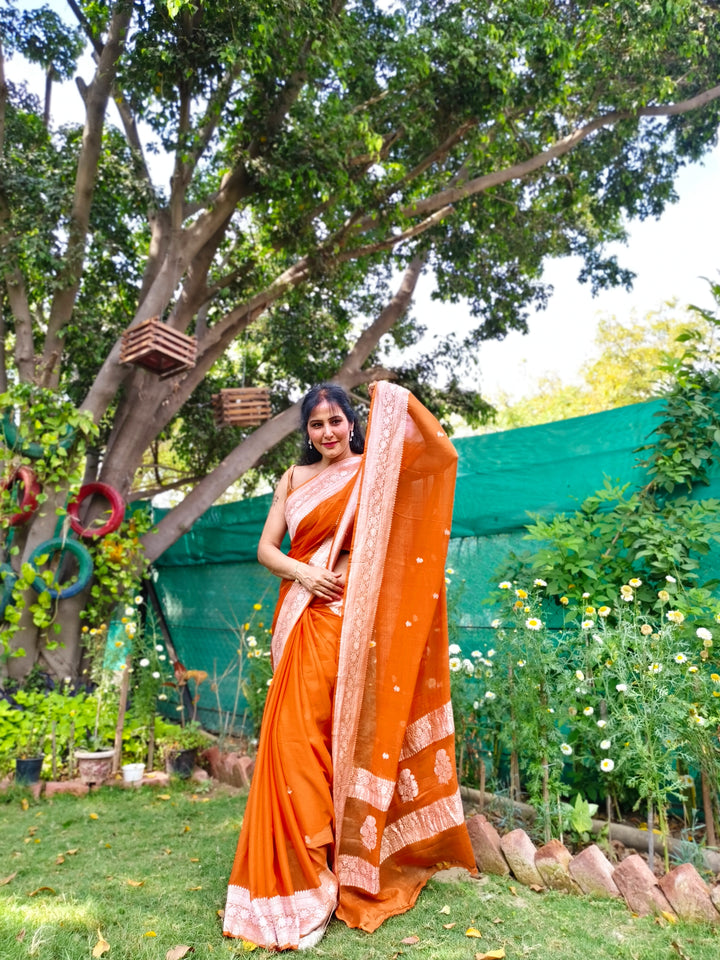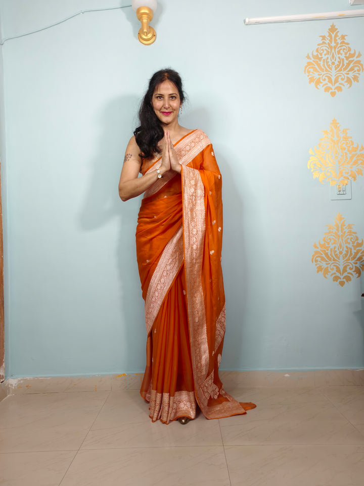 Rust Orange Banarasi Khaddi Georgette Jaal Saree