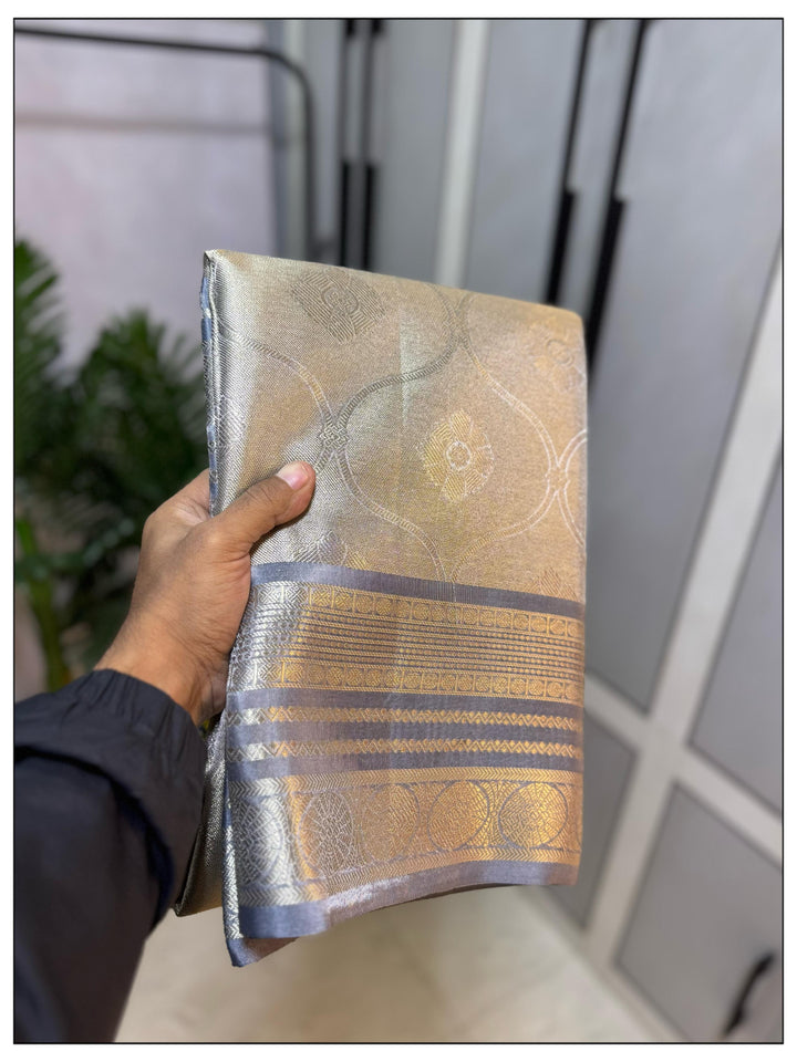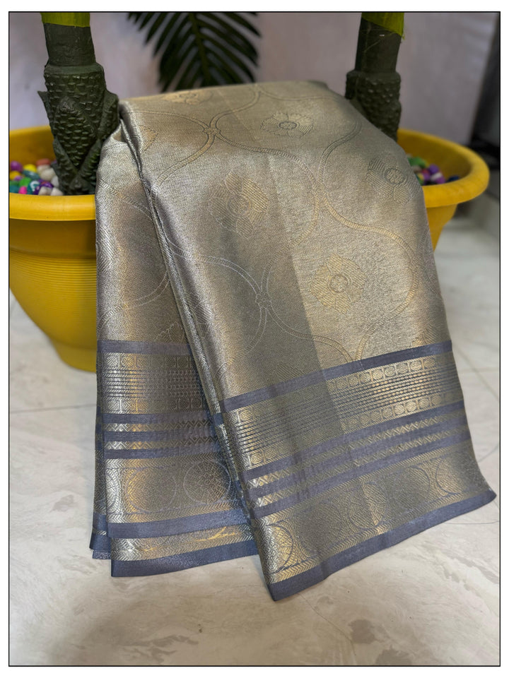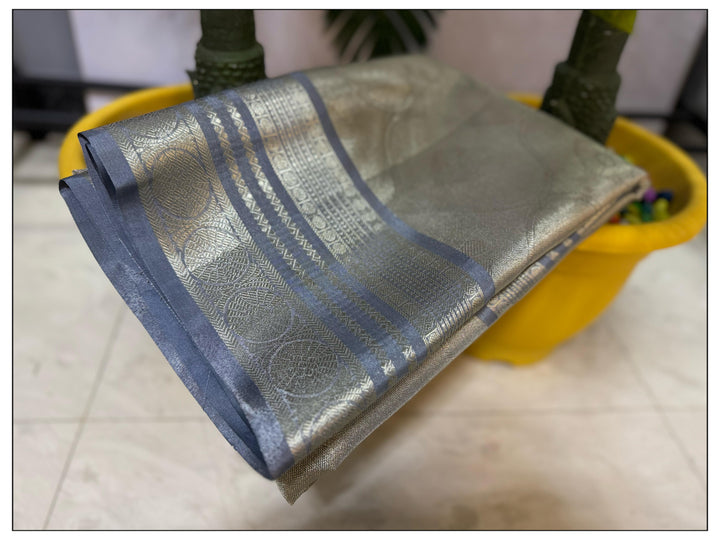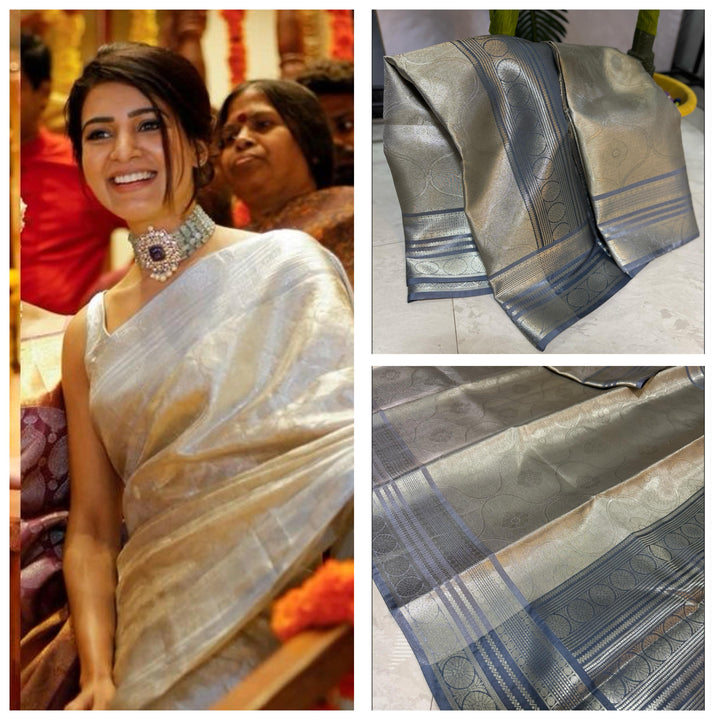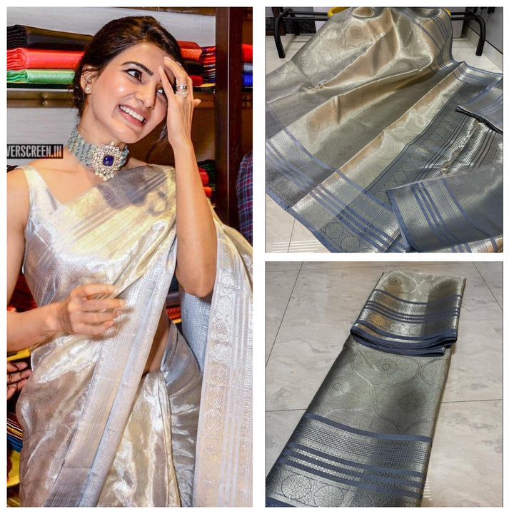 - Samantha Inspired Banarasi Grey Soft Tissue Saree