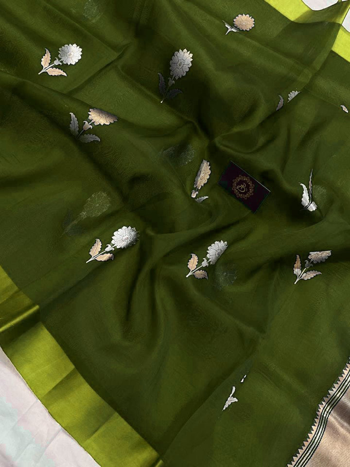 - Hena Green Banarasi Semi-Georgette Soft Silk Saree