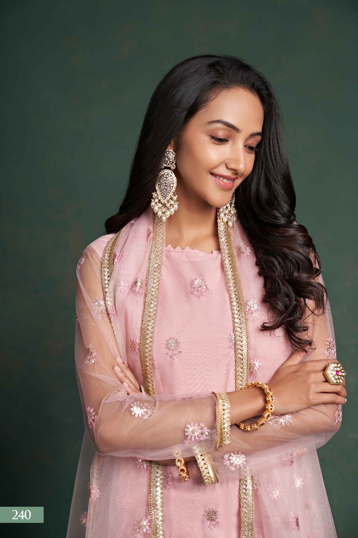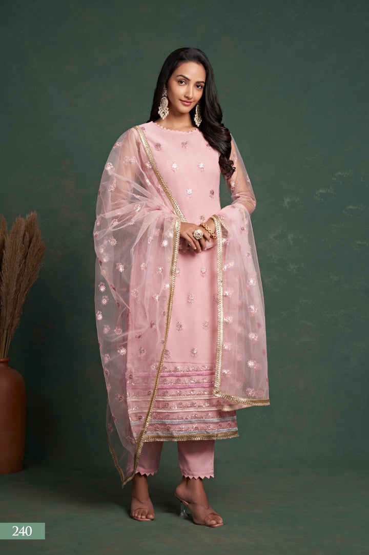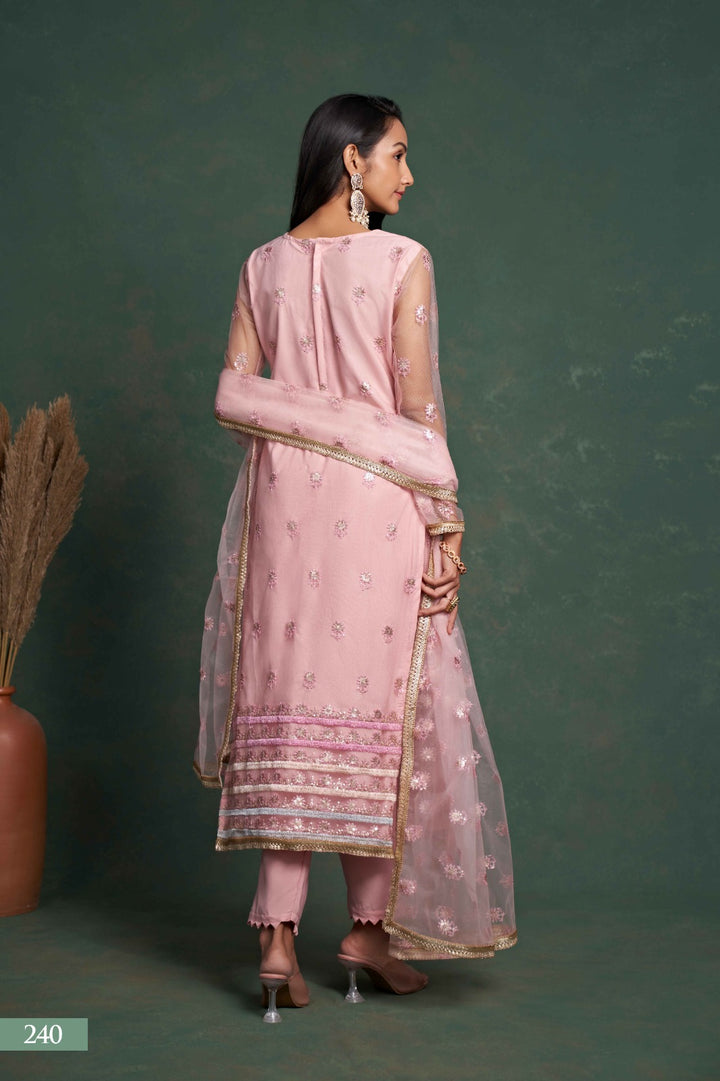 Sequins Suit Set with Embroidery Work in Pink [Semi-Stitched]