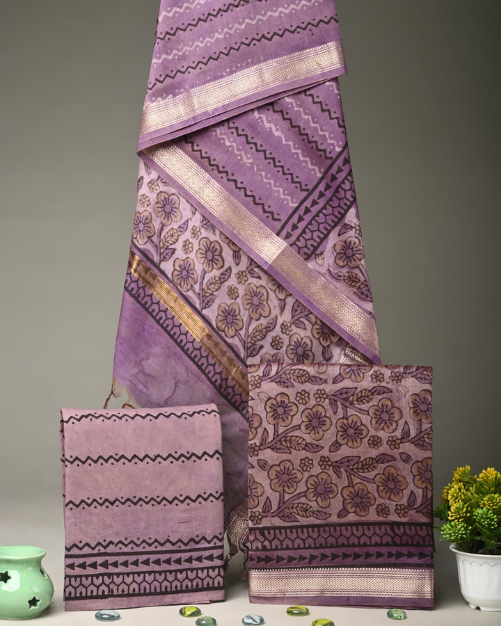 - Linear Purple Trending Maheshwari Silk Suit unstitched dress material