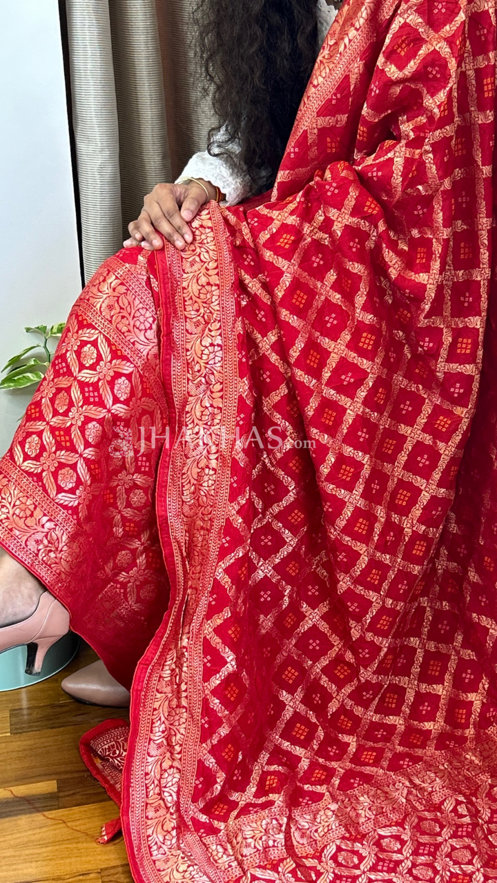 - Red Trending Banarasi Ghatchola Dola Silk Dupatta
