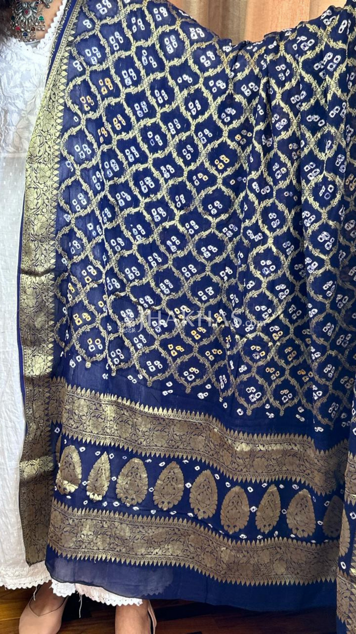- Navy Blue Trending Banarasi Ghatchola Georgette Dupatta
