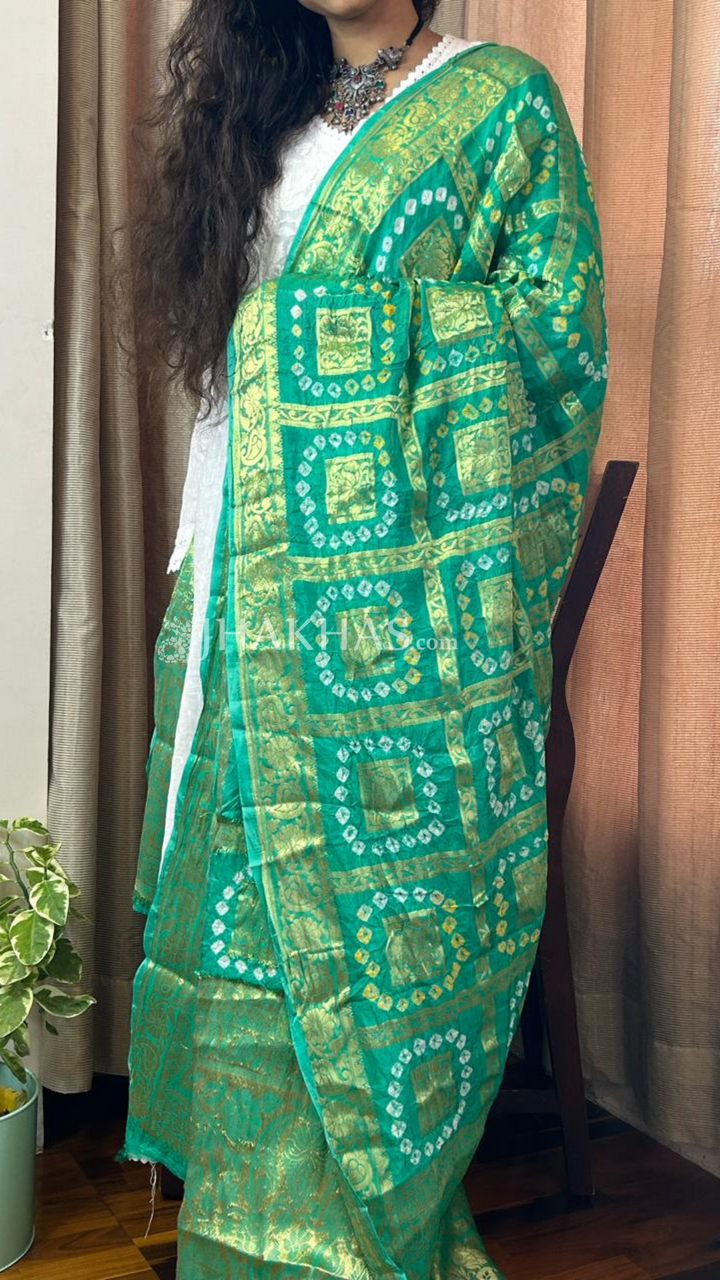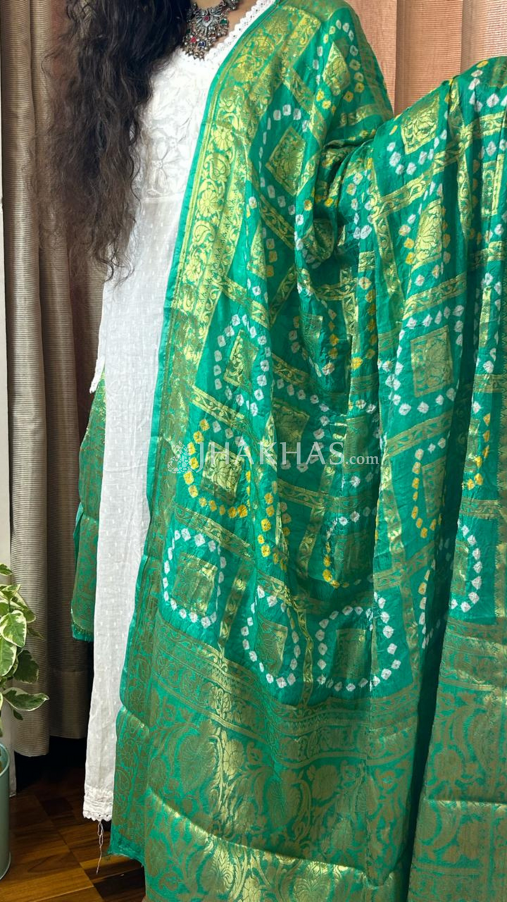 Leaf Green Banarasi Gharchola Soft Silk Dupatta