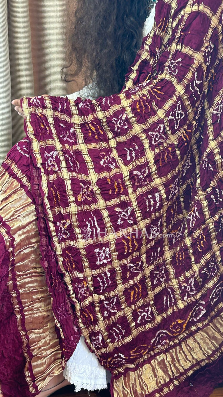 Wine Purple Banarasi Gharchola Gajji Silk Dupatta