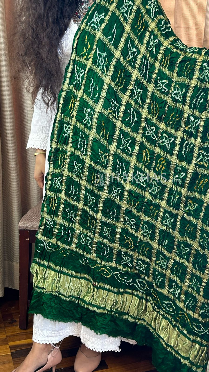 - Dark Green Trending Banarasi Ghatchola Pure Gajji Silk Dupatta