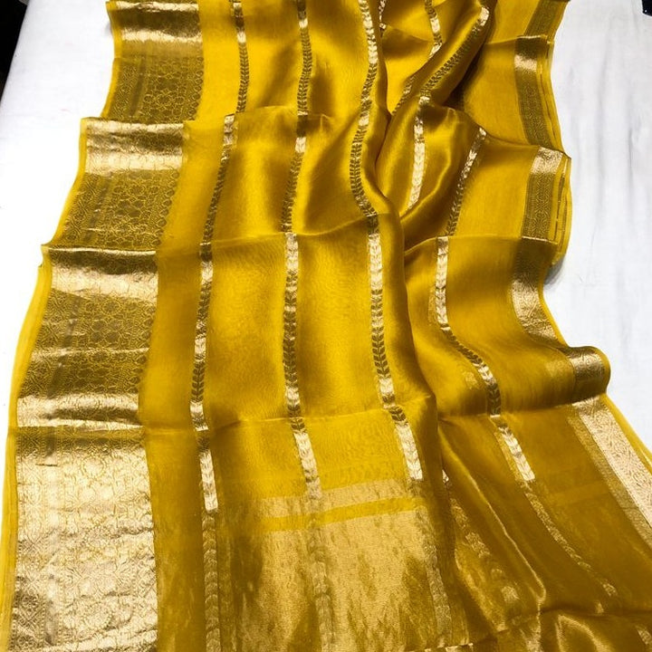 - Rich Gold Banarasi Kora Silk Saree