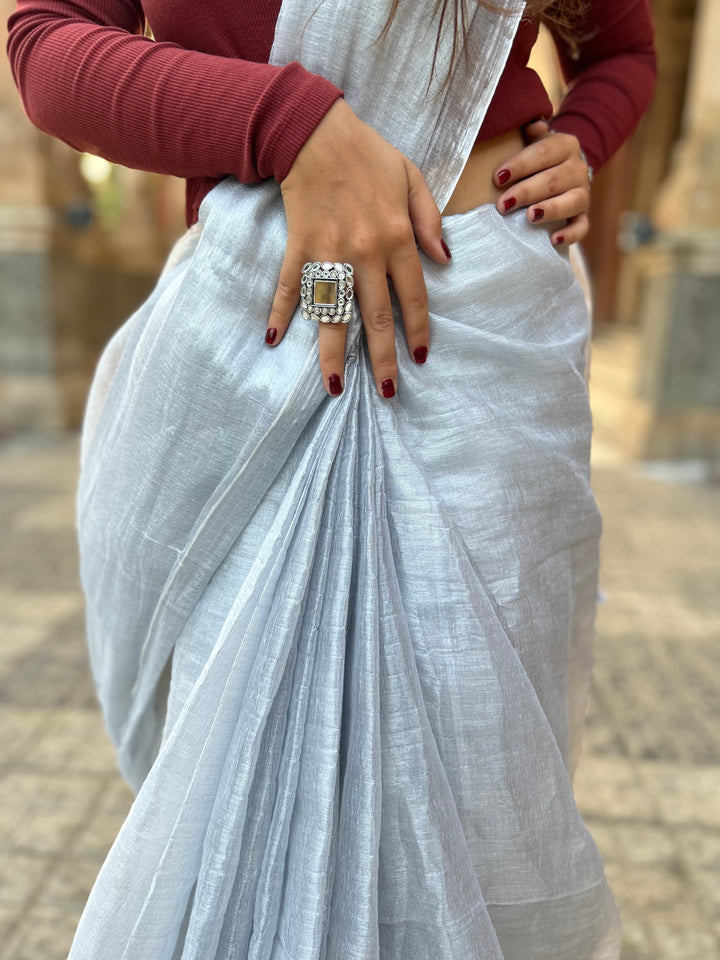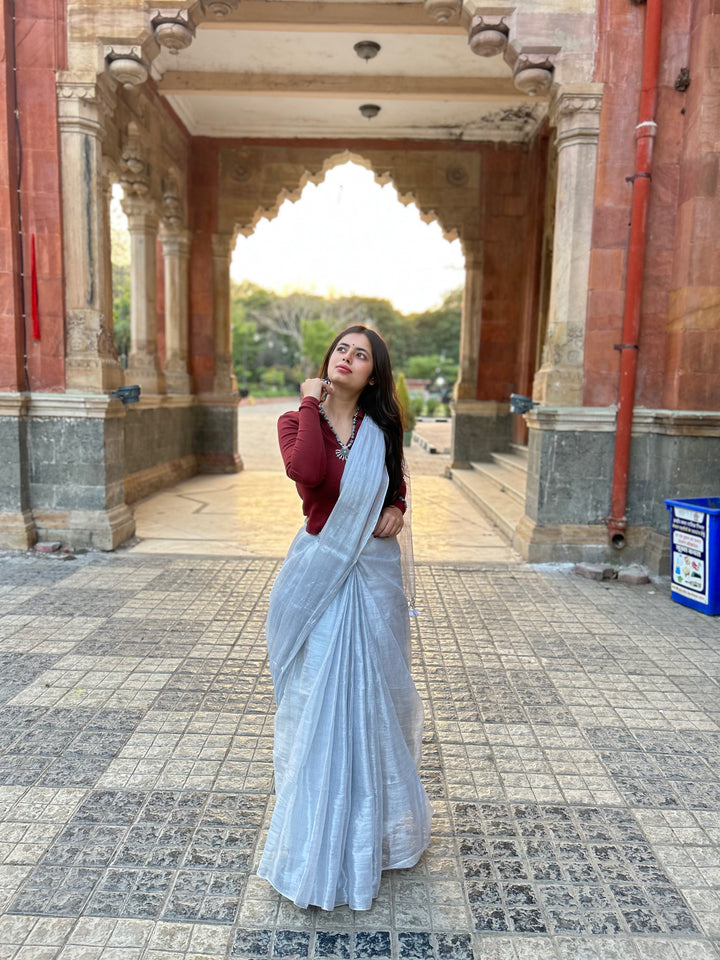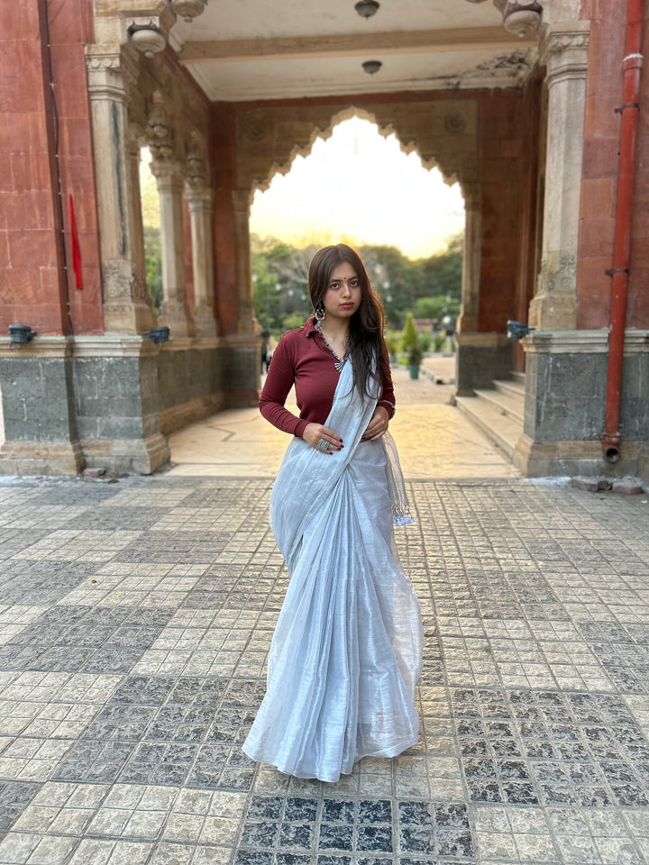 - Subtle shimmer adds luxurious and ethereal element to the drape(pallu)