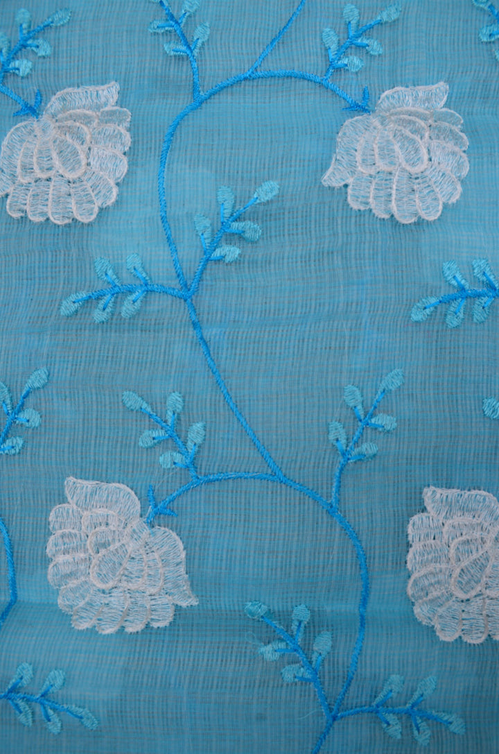 Shachi- Beautiful Kota Doriya Embroidery Work Suit In Sky Blue. This Traditional Suits 2.5 Mtr Top In Kota ,2.5 Mtr Dupatta In Kota,2.5 Mtr Bottom In Cotton, Wear This Kota Doria Suit With Kundan Necklace And Jhumkas On Day Time Function, This Designer Suit Comes With Beautiful Dupatta That Seems Perfect For Any Occasion,Free Shipping And Cod Available, Shipping Worldwide.
