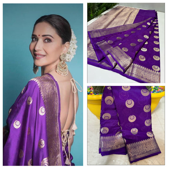 Madhuri Dixit Inspired Semi Kathan Soft Silk Saree