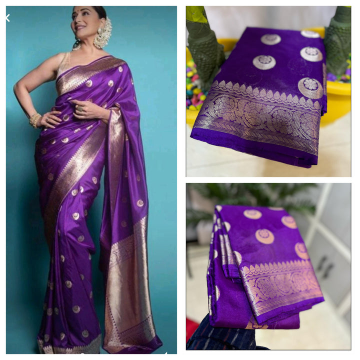 - Wedding Wear purple Semi Kathan Soft Silk Saree