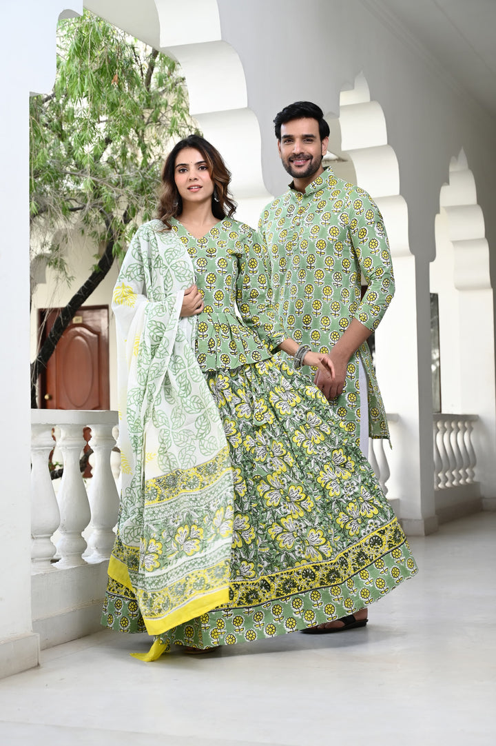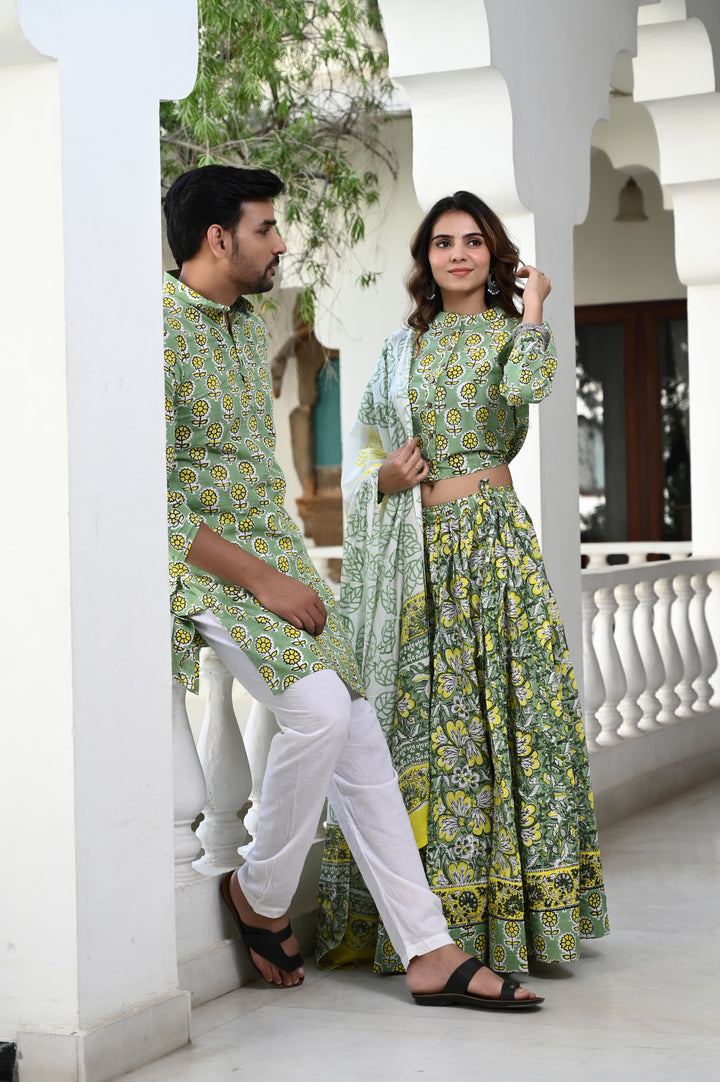 *Bagru Hand Block Printed Designer Top & Skirt With Mulmul Dupatta.*