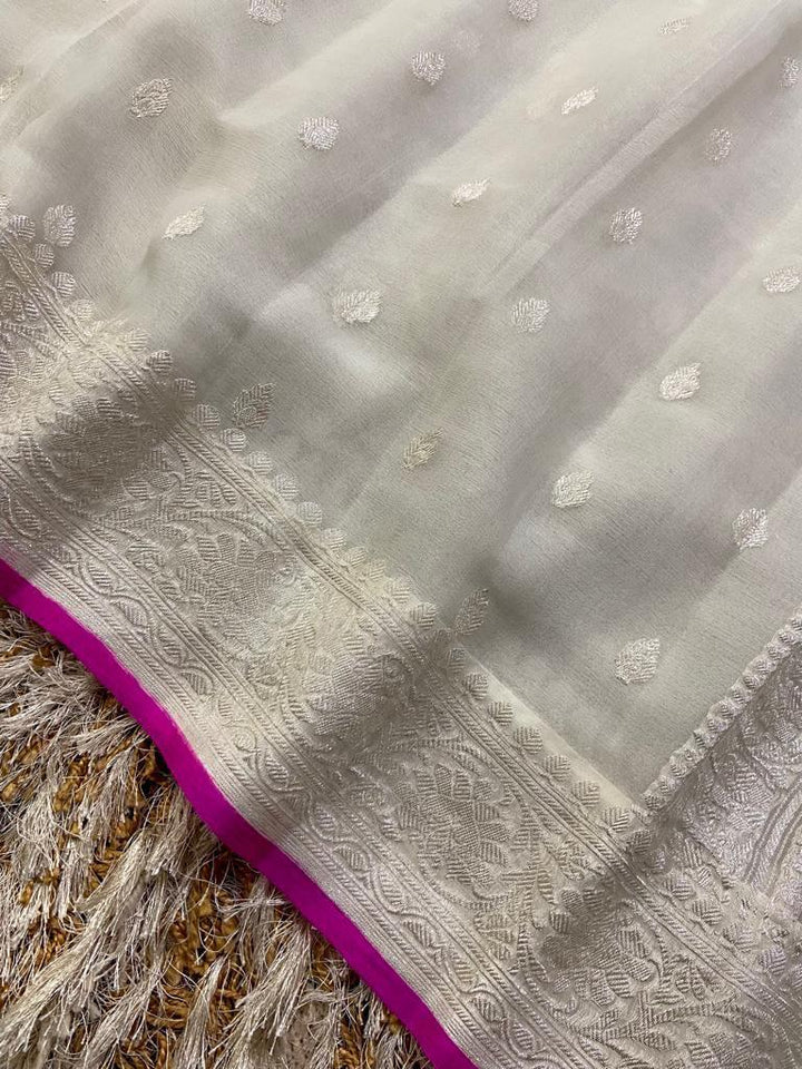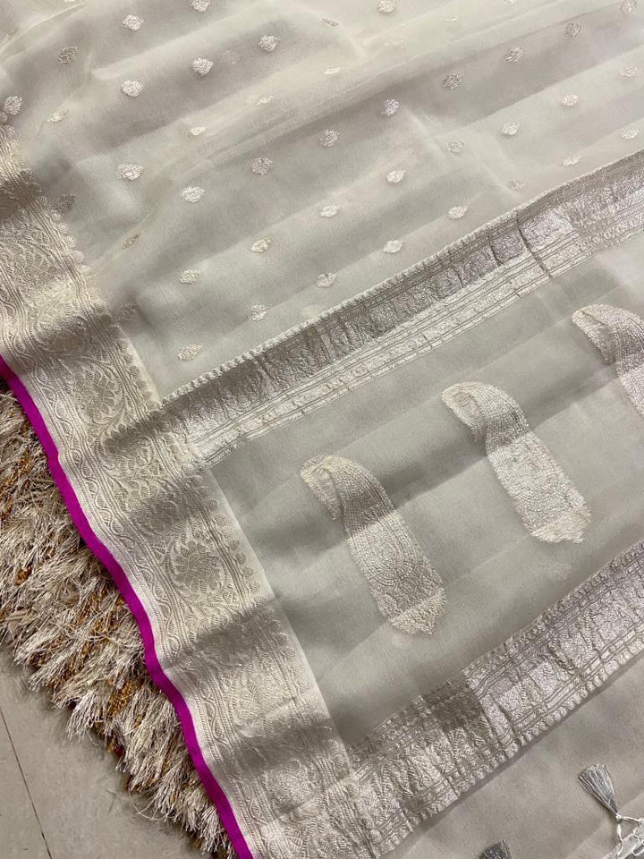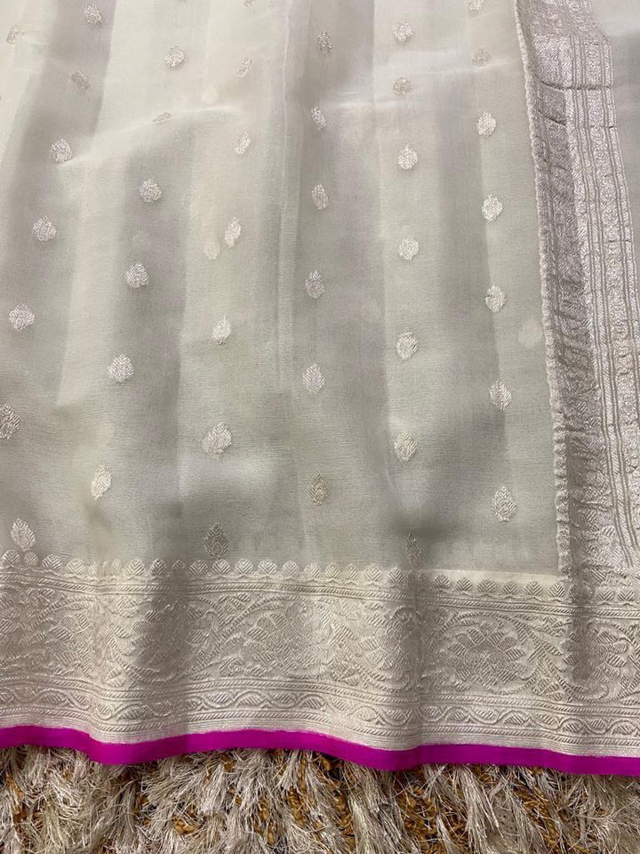 White Color Banarasi Khaddi Georgette Saree