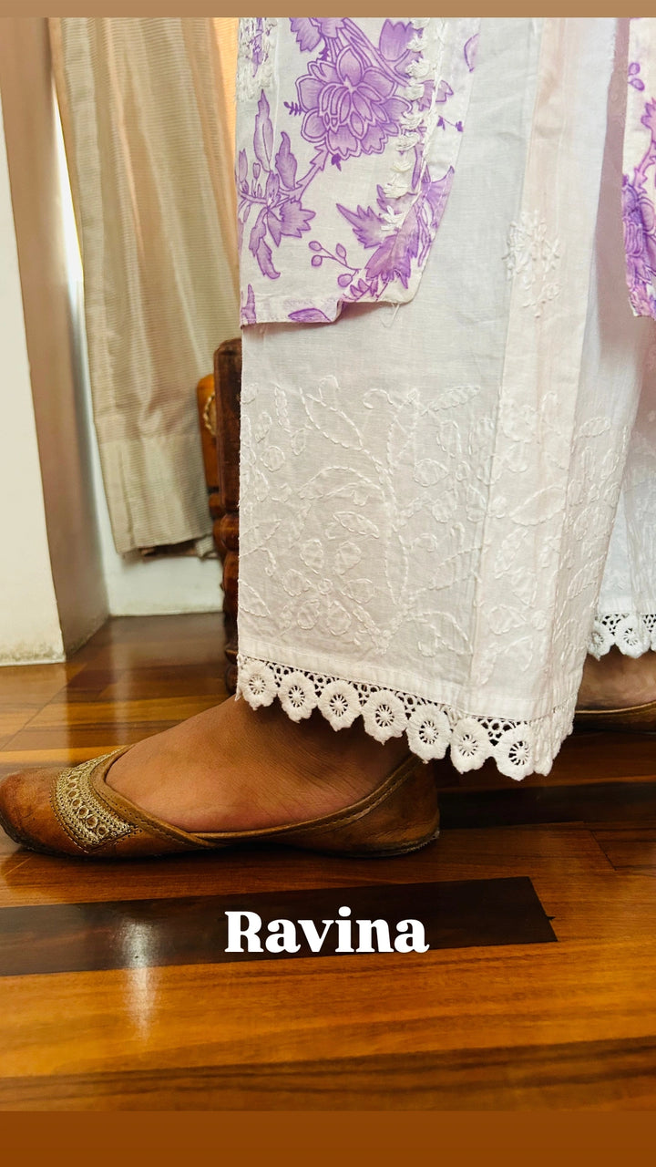 - White Lucknowi Chikankari Straight Palazzo with lace