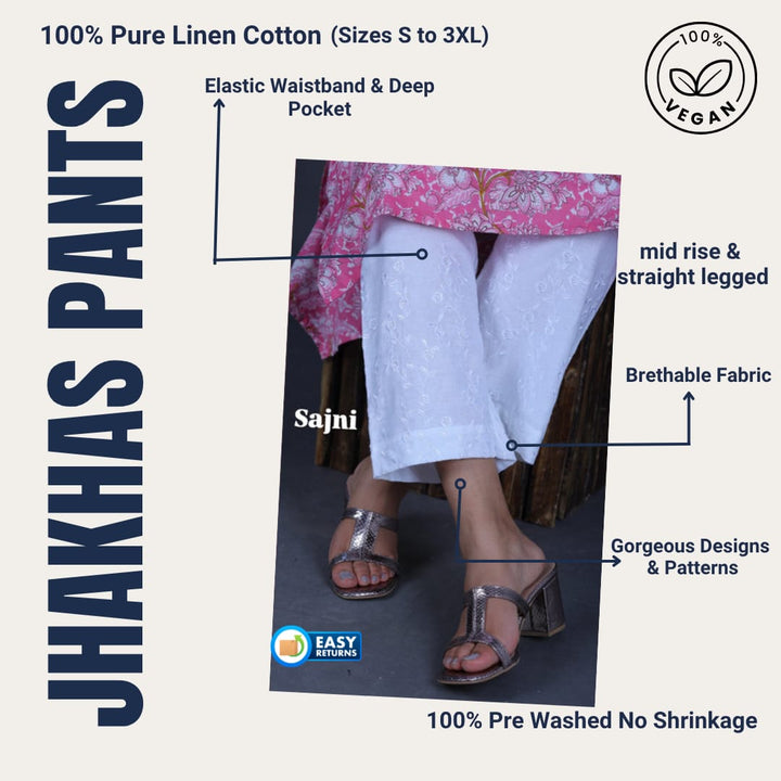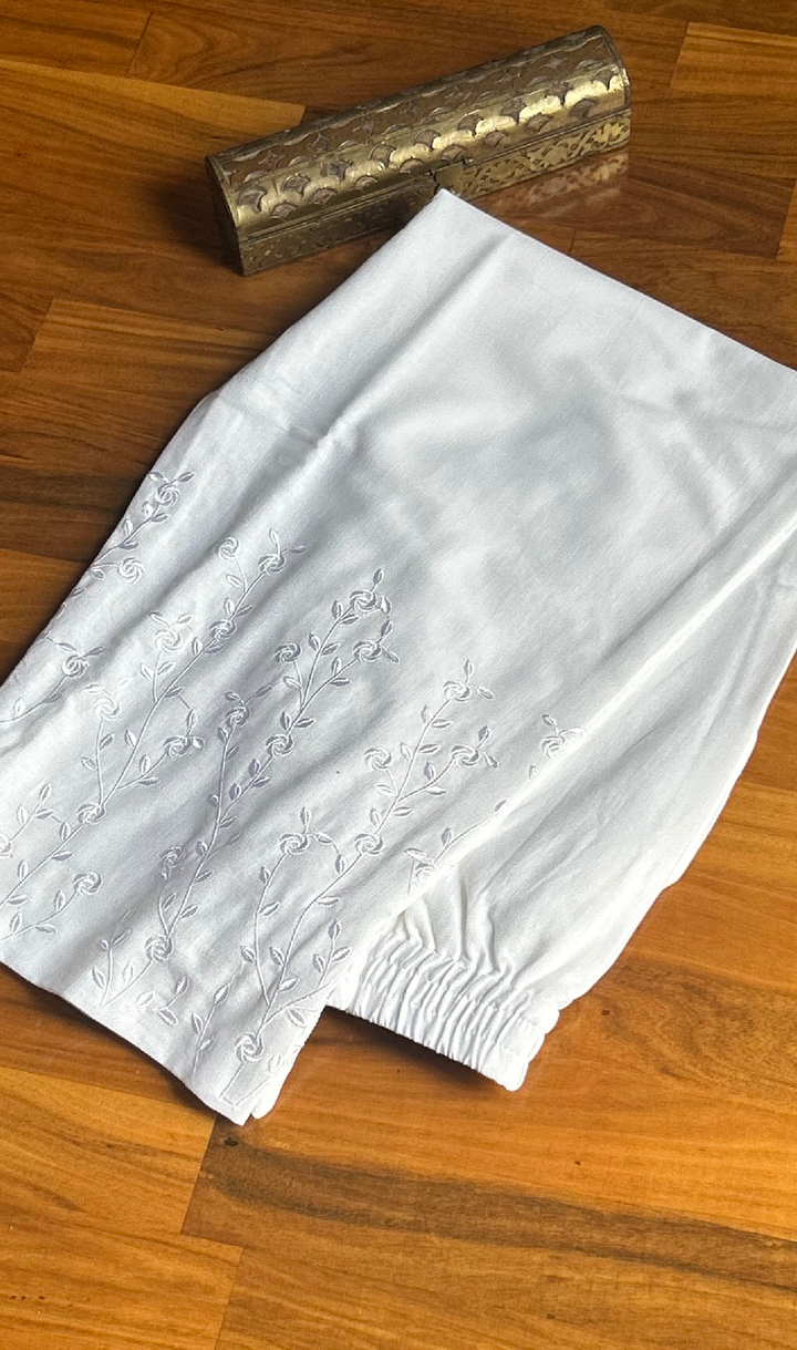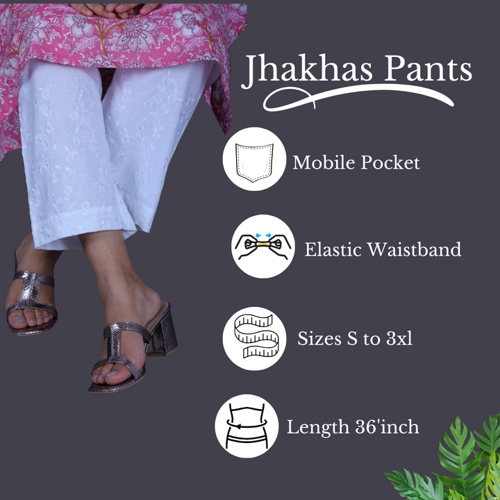 Sajni White Embroidery Straight Pant In Cotton For Women