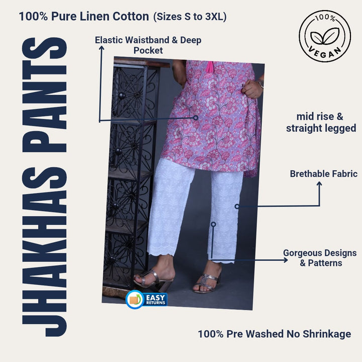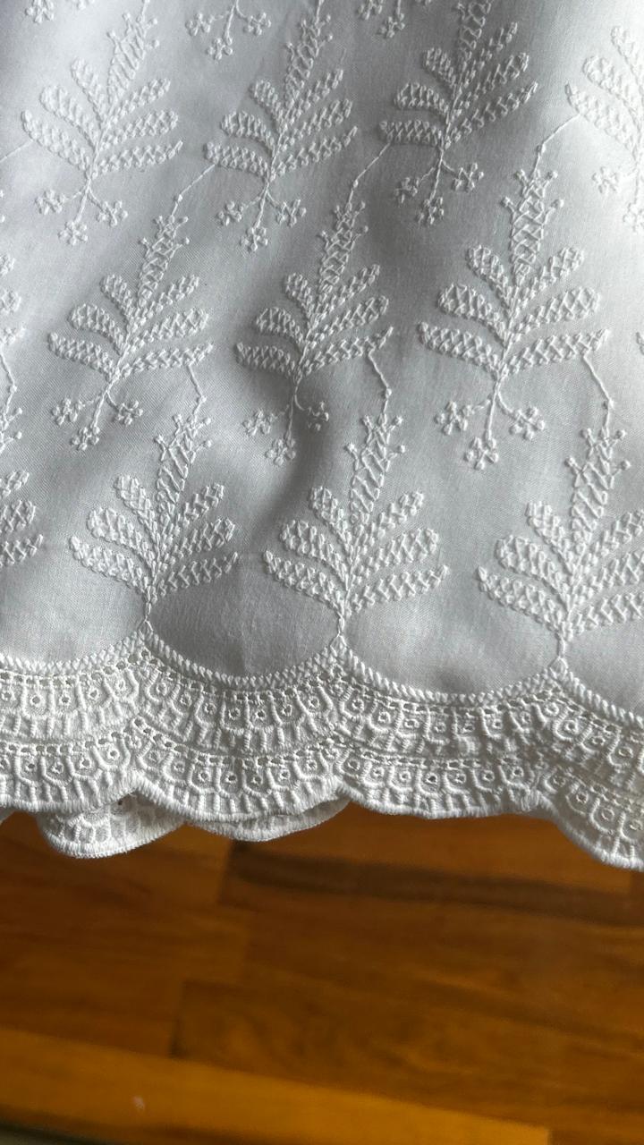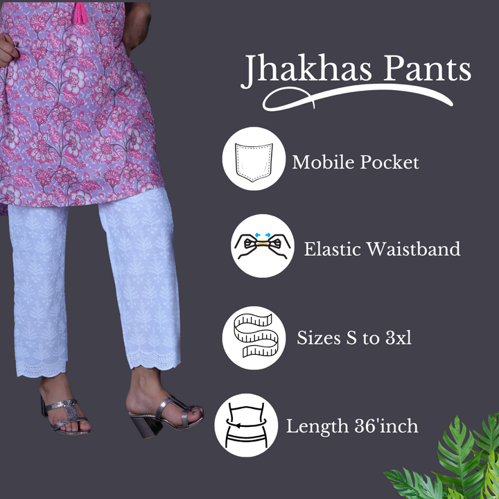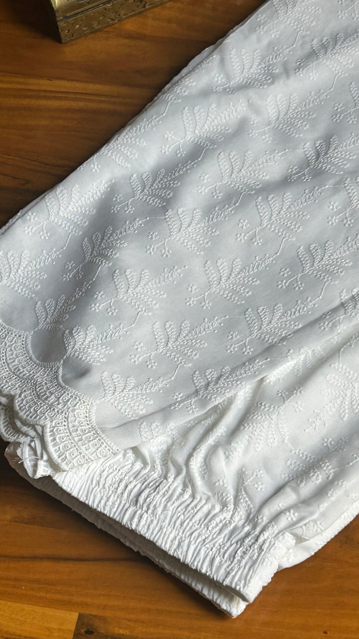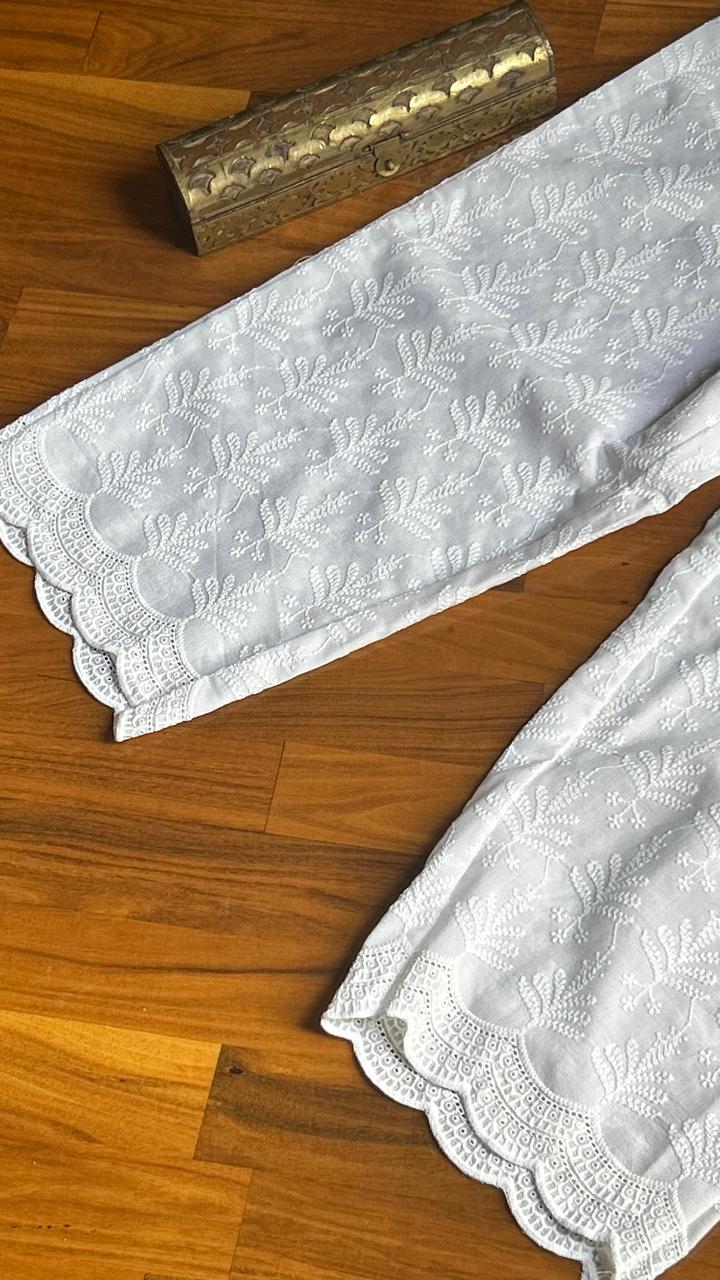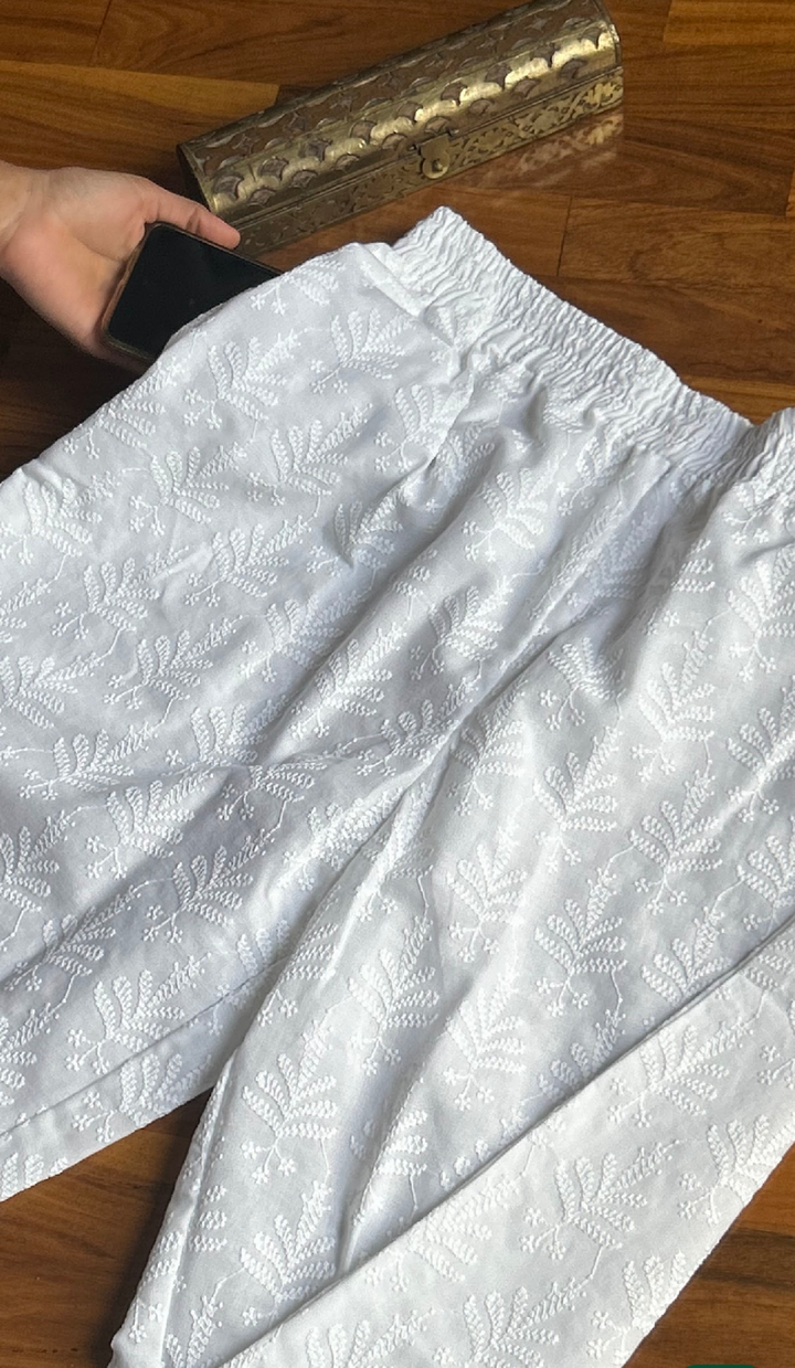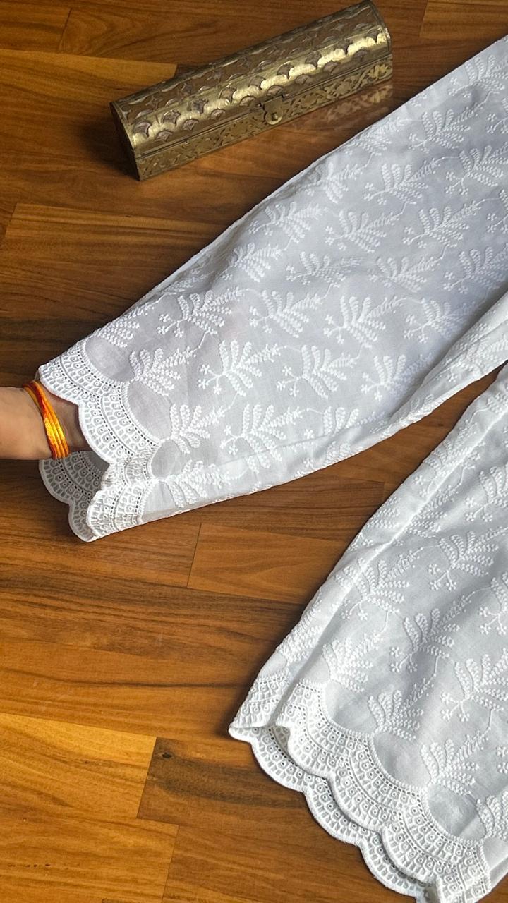 - White Chikankari Work Straight Pant