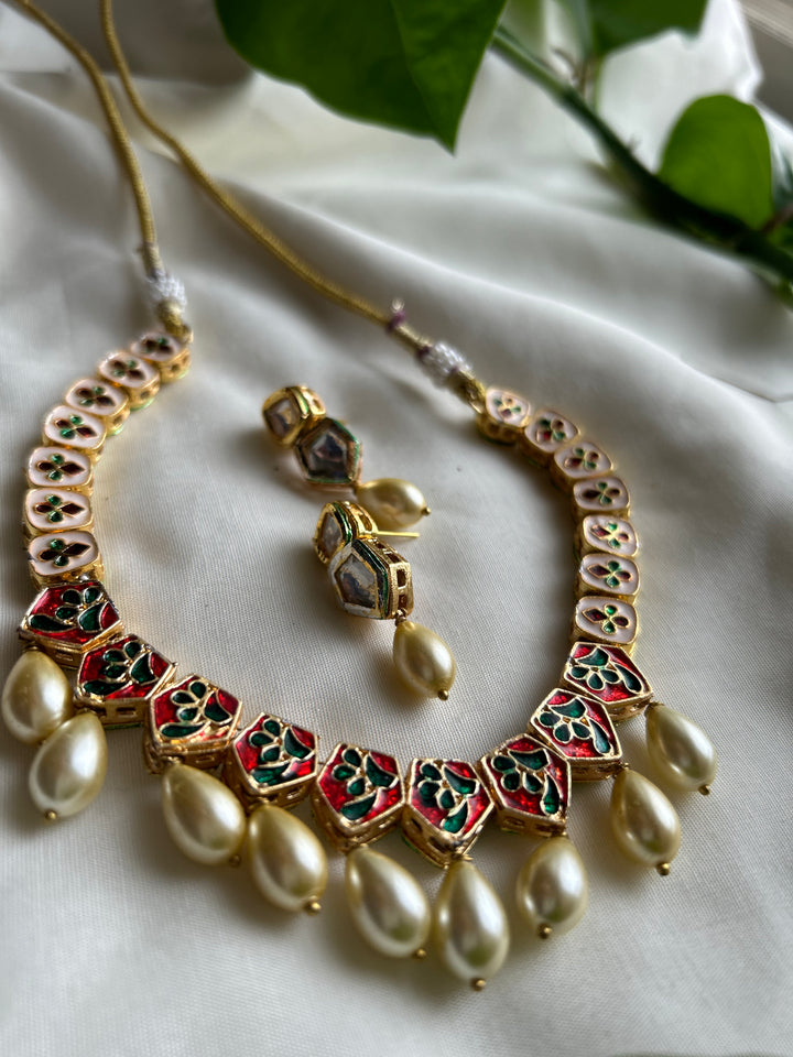 Classic Necklace Set , Kundan work premium set with back Meenakari work.