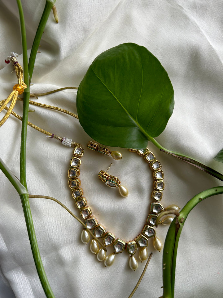 When wearing these beautiful kundan Necklace Set don’t forget to pull your hair away from your face so that the elegant colour can shine through.Comes With Matching Earing.