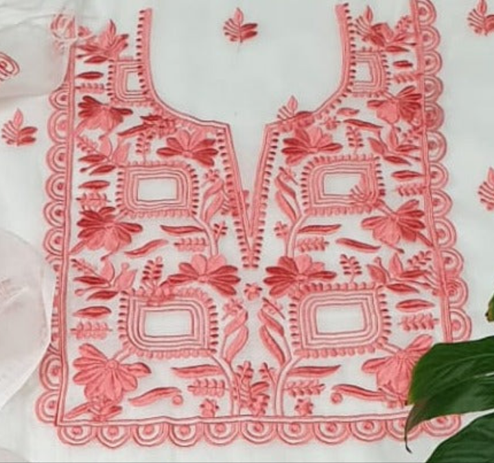 Peach Kota Doriya Embroidery Work Suit