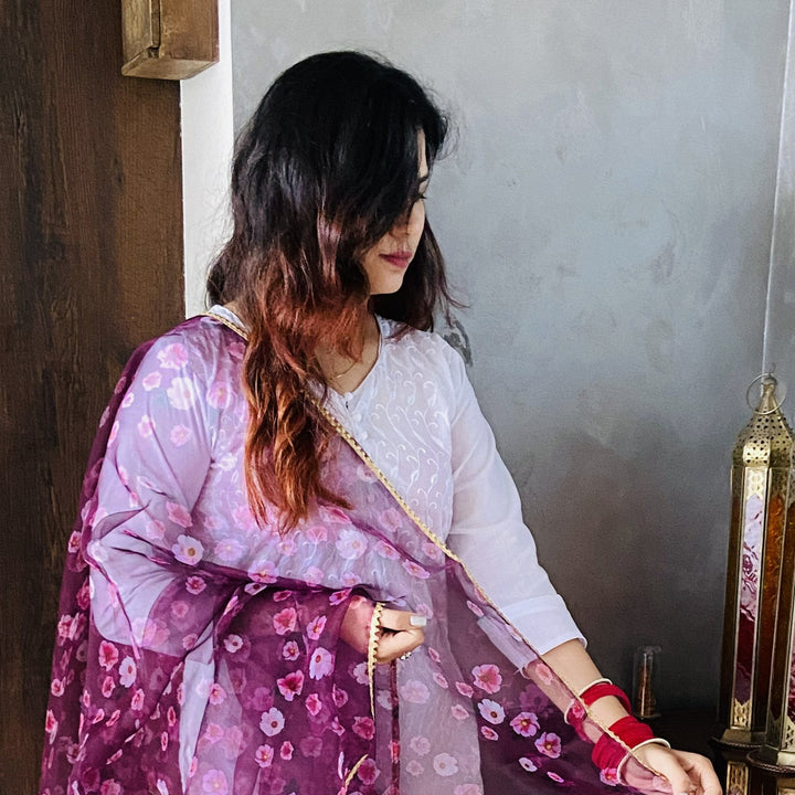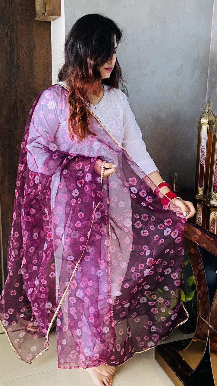Wine Floral Organza Dupatta