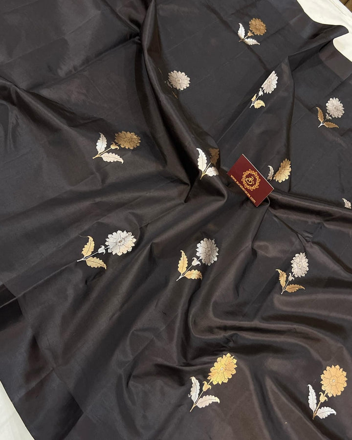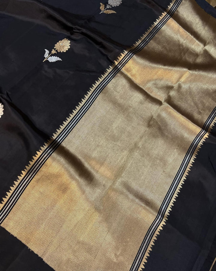 - Black Banarasi Semi-Georgette Soft Silk Saree