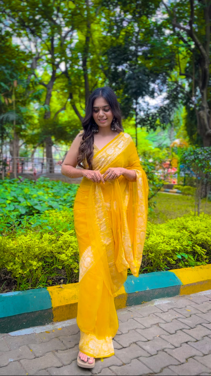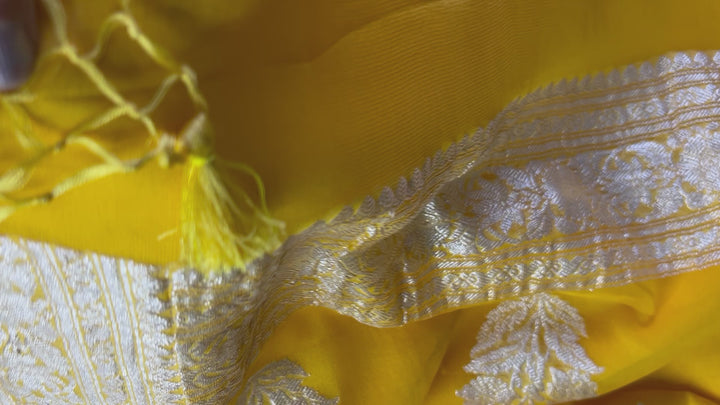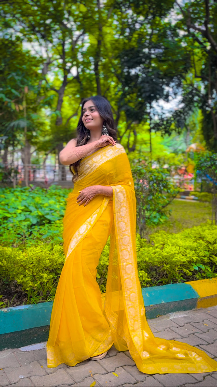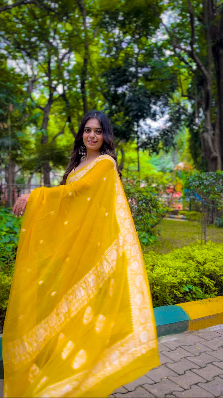 Haldi Yellow Banarasi Khaddi Georgette Jaal Saree