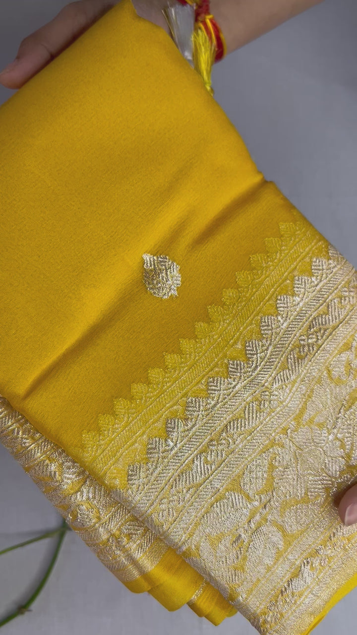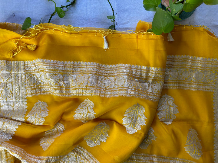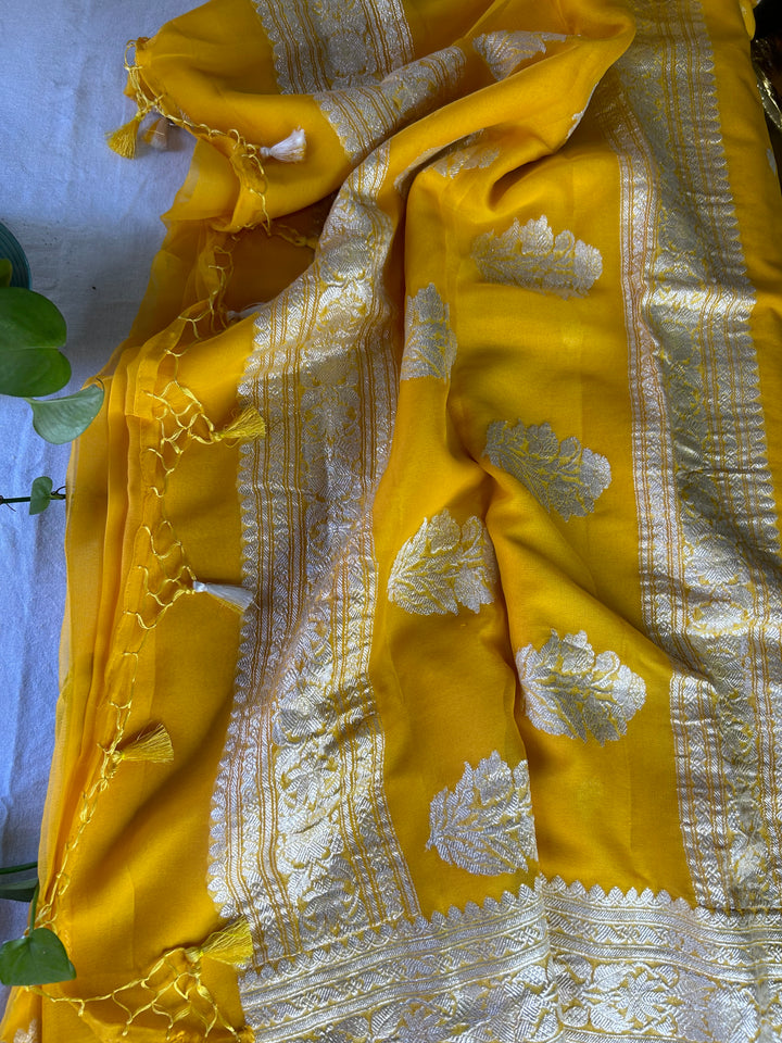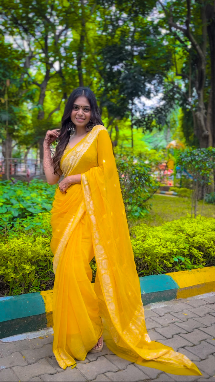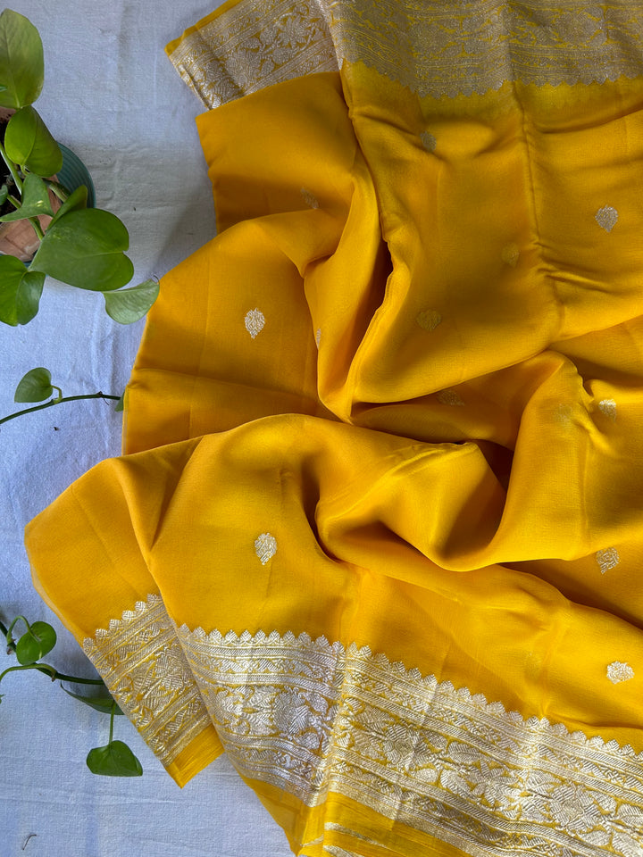 Haldi Yellow Banarasi Khaddi Georgette Jaal Saree