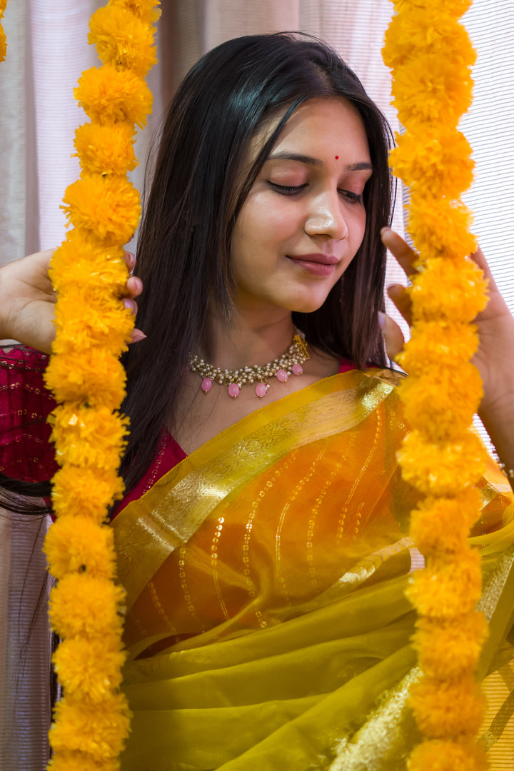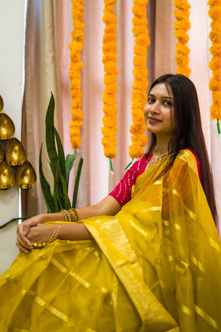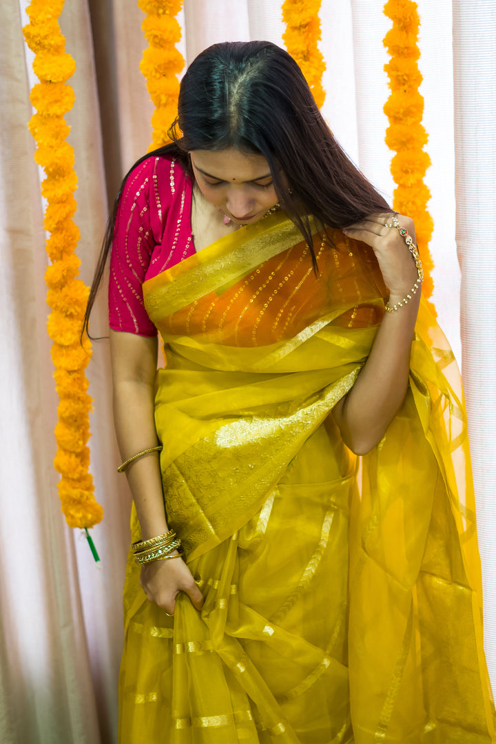 Gold Yellow Banarasi Kora Silk Occasion Saree online