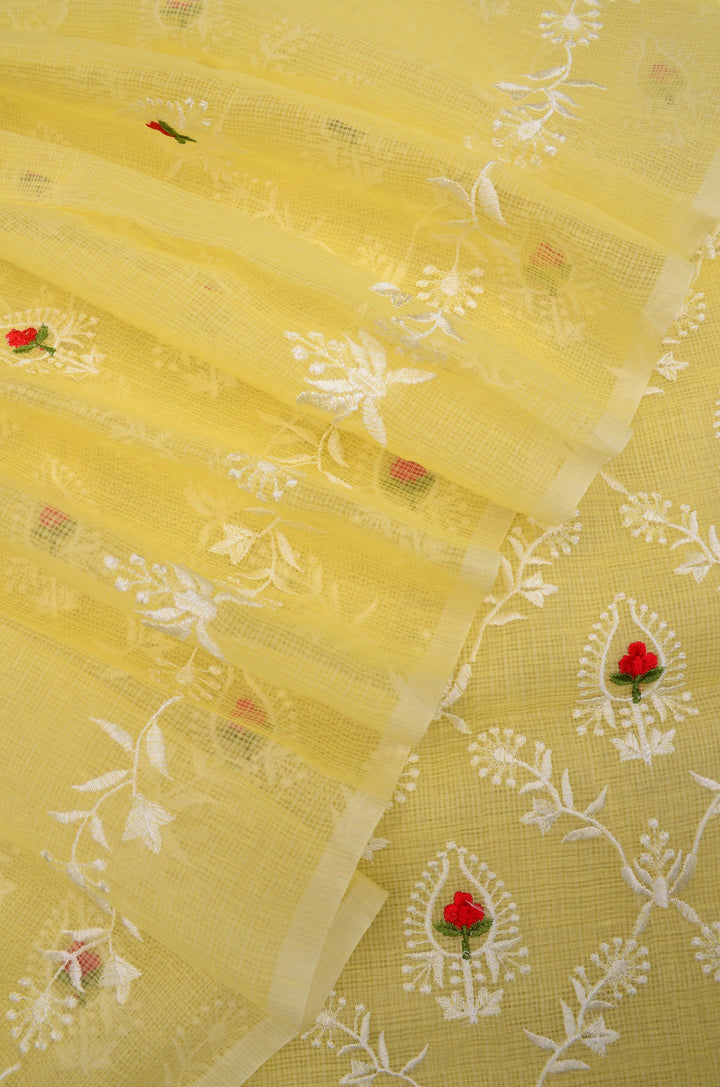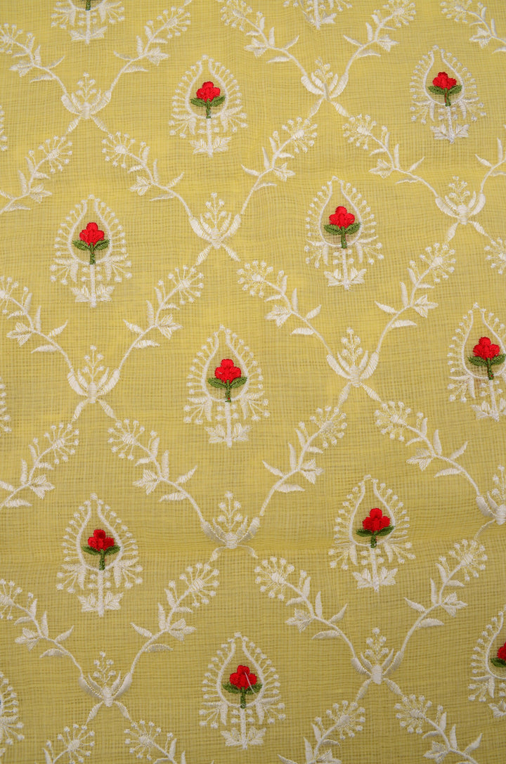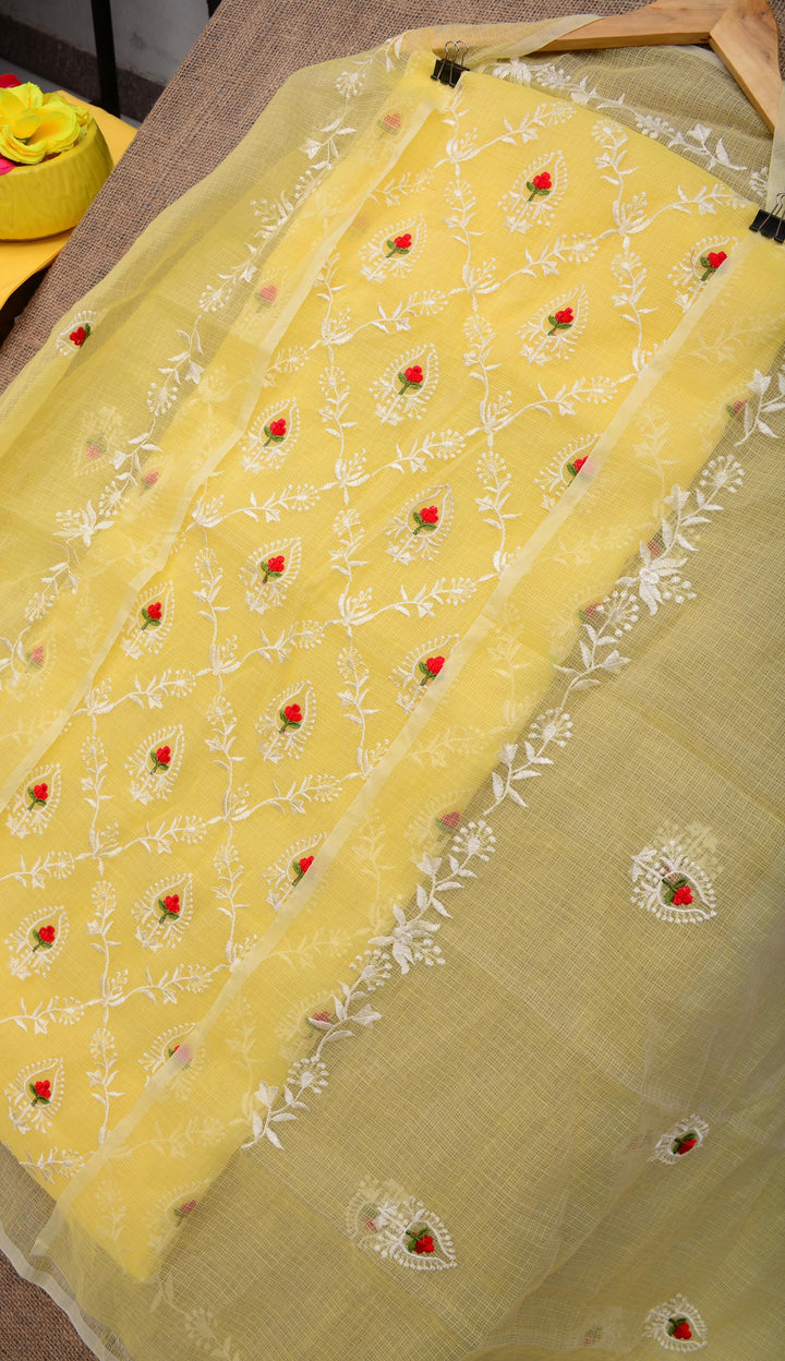Harsingar- Yellow Embroided Kota Doria Suit Fabric With Dupatta (unstitched)