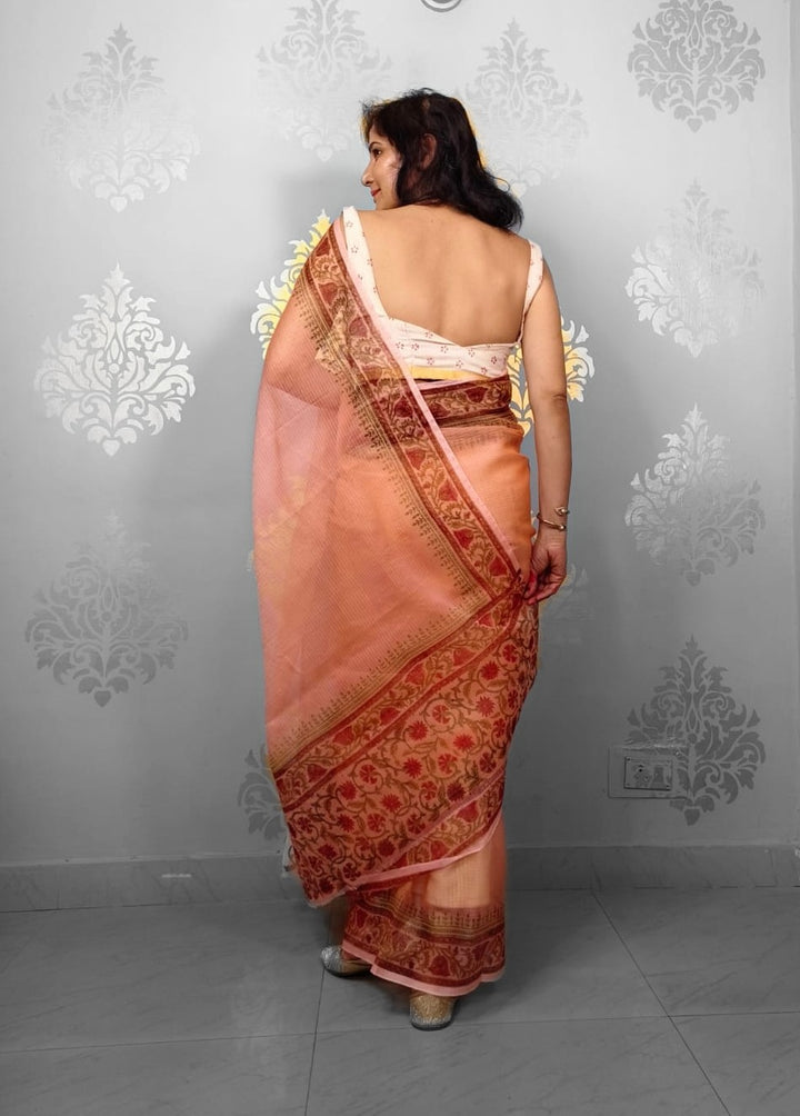 Manjari- Cream Kota Doria Hand Block Print Saree