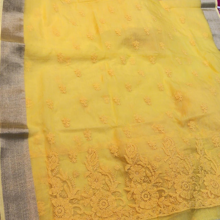 - Fancy Sunshine Yellow Organza Chikankari Salwar Kameez Set Unstitched