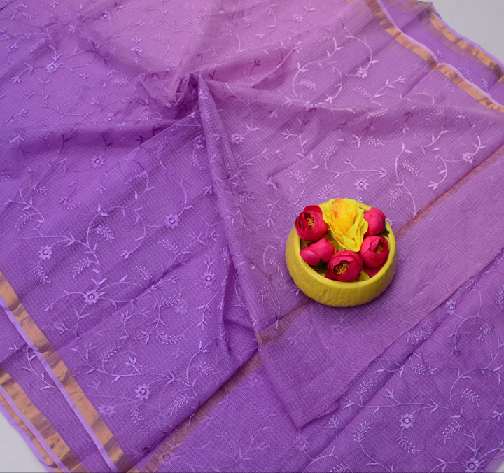 Manorama- Purple Kota Doria All Over Embroidery Work Saree